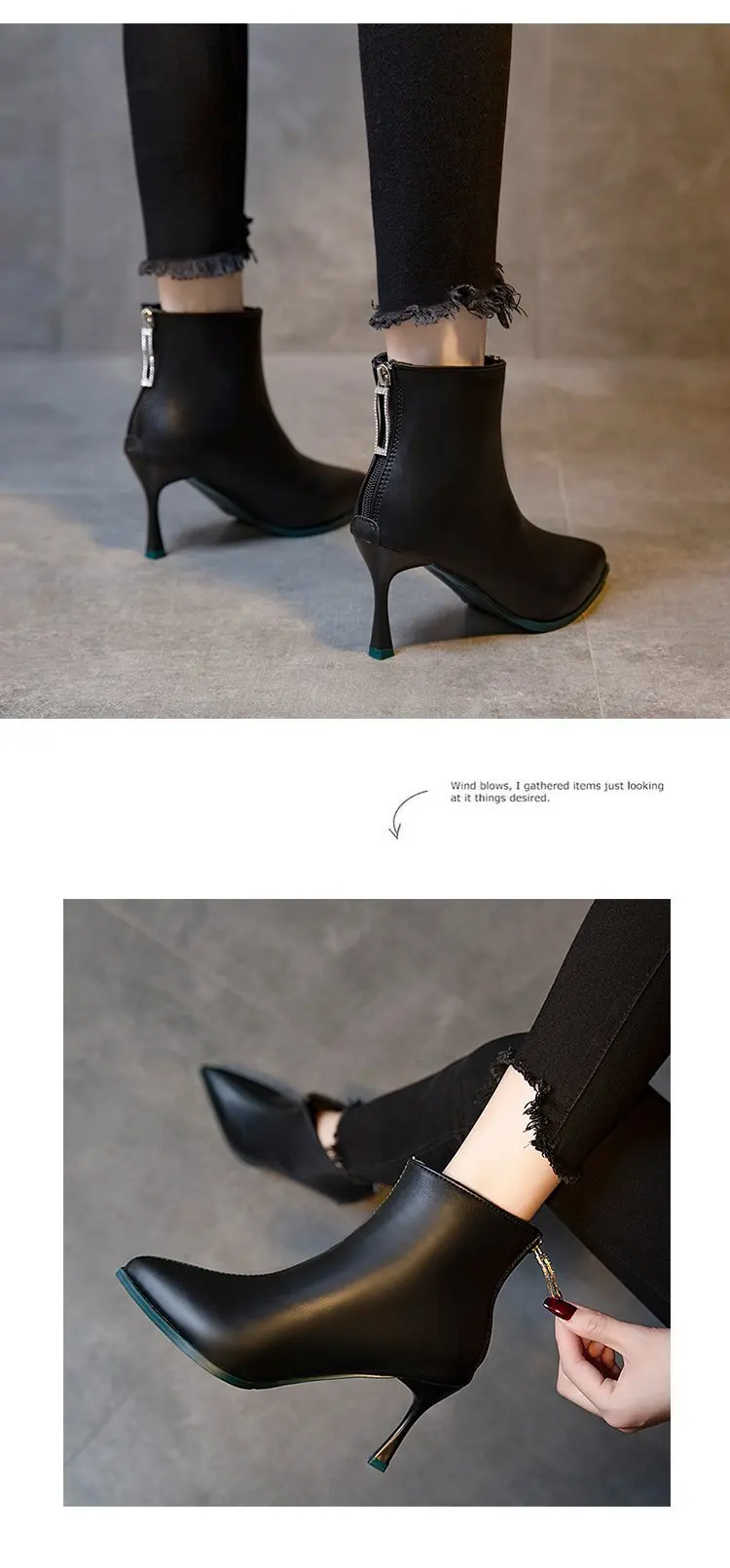 Женские короткие ботинки с острым носком, на высоком каблуке, 8 см