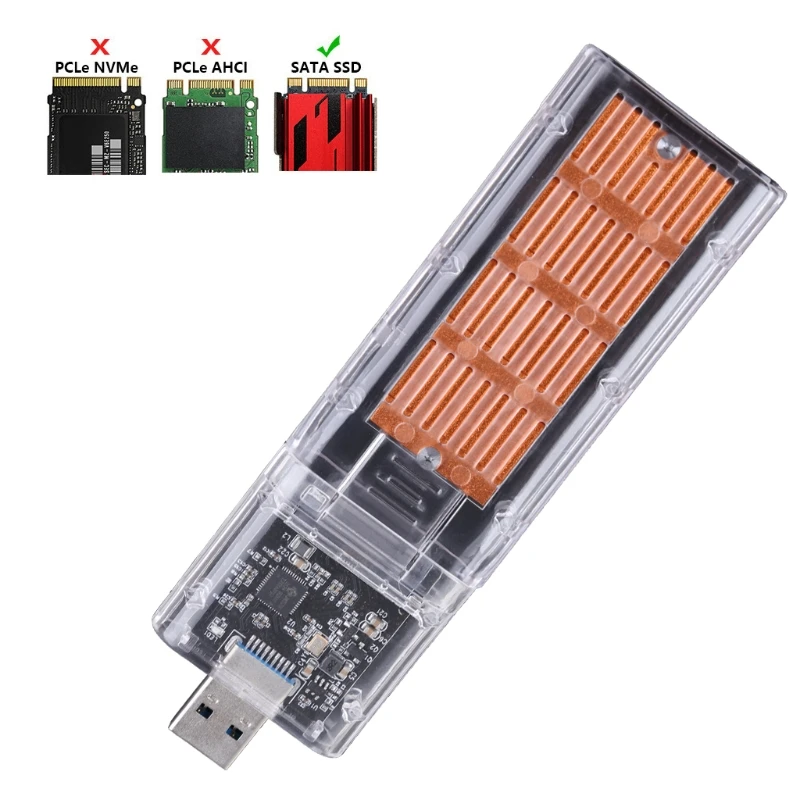 77JC прозрачный M2 SSD чехол SATA PCIE M.2 корпус для жесткого диска M.2 для USB3.0 Gen1 5 Гбит/с коробка адаптера SATA B-ключевой диск считыватель чехолOOTDTYОсобенности на 100% абсолютно новый и высокого качестваОснащен основным чипом управления JMS578, поддерживает SATA B-KEY M.2 SSDUSB3.0 GEN1 5 Гбит/с высокая скоростьРазмер жесткого диска: 2230/2242/2260/2280 ммПоддержка подключения к мобильным телефонам, поддержка жестких дисков большой емкости 2T и выше.Когда SSD читается и записывается, светодиодный сигнальный светильник мигнет и войдет в спящий режим, светодиодный сигнальный светильник погаснет.Параметры: Поддержка жесткого диска Размеры: 2230/2242/2260/2280 ммПоддержка жесткого диска Модель: B Ключ (SATA) Протокол M.2 SSDЦвет: черный/золотой/синий/прозрачный (без корпуса)Размер: приблизительно 130x40x1 0 мм/5.12x1.57x 0.39in (с оболочкой)Приблизительно 50x40x1 0 мм/1.97x1.57x0.39in (без корпуса)Посылка включает в себя: 1x SSD корпус (без SSD)1x Руководство пользователяПримечание: Из-за проблем с световыми эффектами и углами съемки, в продукте будут определенные допуски, пожалуйста, поймите.Возможны отклонения в 0-1 см из-за измерения вручную.