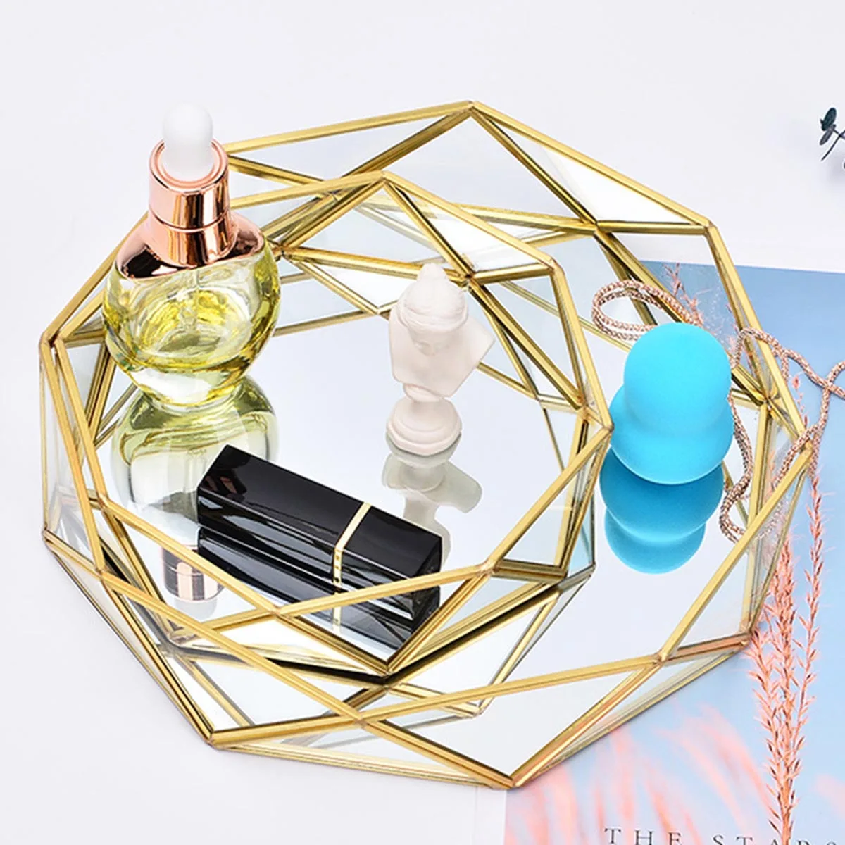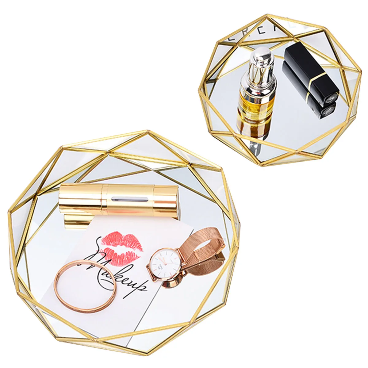 Металлические стеклянные подносы для хранения, настольный органайзер, поднос для еды, торта, десерта, кофе, декоративный поднос для косметики, ювелирных украшений, мелочей