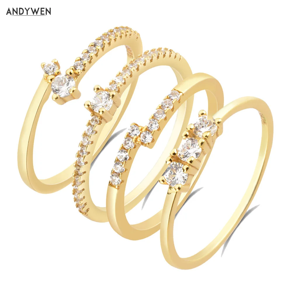 ANDYWEN 925 пробы серебряные золотые прозрачные циркониевые серьги-...
