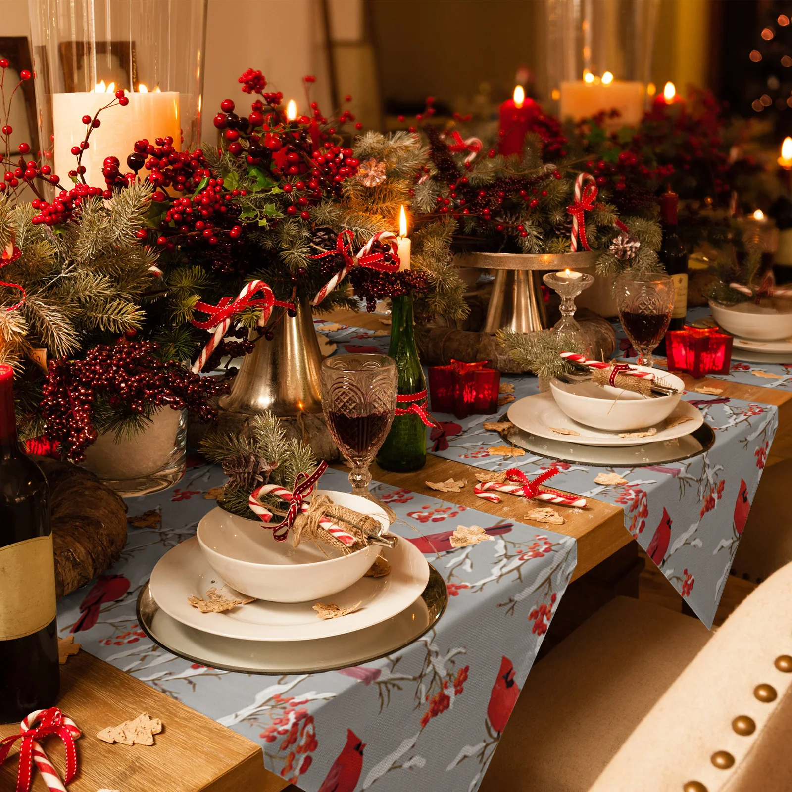 Рождественские Зимние красные скатерти Robin, скатерти, украшение для свадебной вечеринки, Рождества, скатерти для стола, новогодний и Рождественский Декор