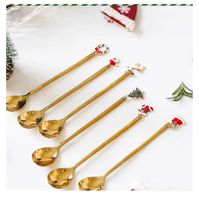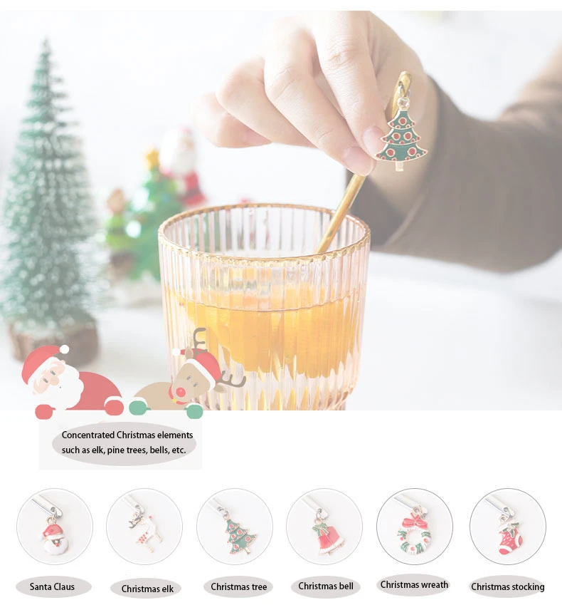 Рождественские наборы кофейных ложек, ложка для перемешивания кофе, креативная десертная ложка для чая, Рождественская Подарочная коробка, ложка для мороженого из нержавеющей стали