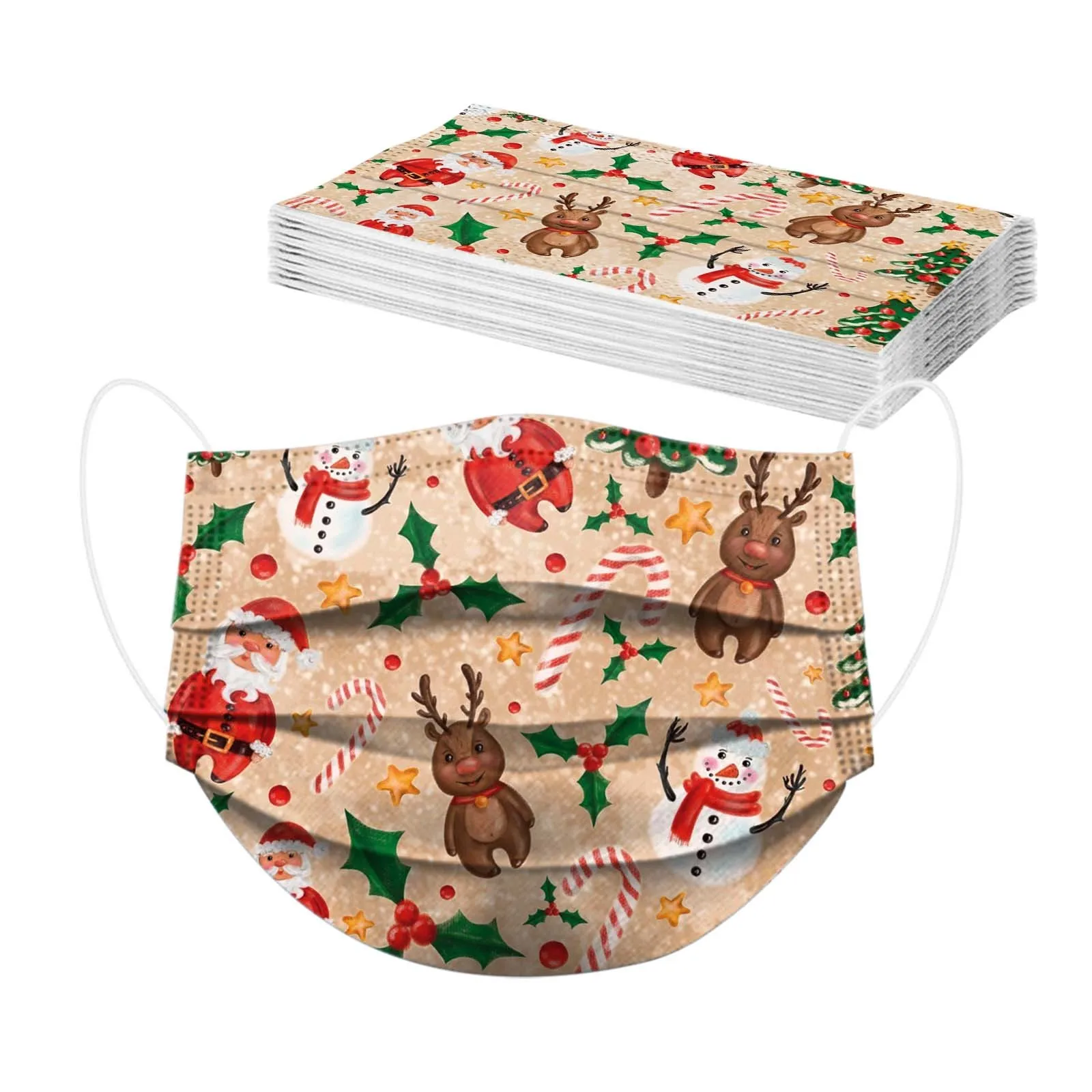Персонажи10PC Adult Protective Christmas Printed Disposable Mask