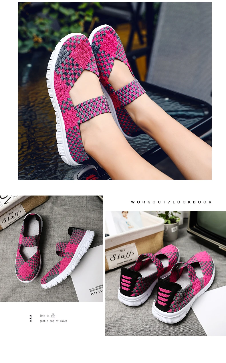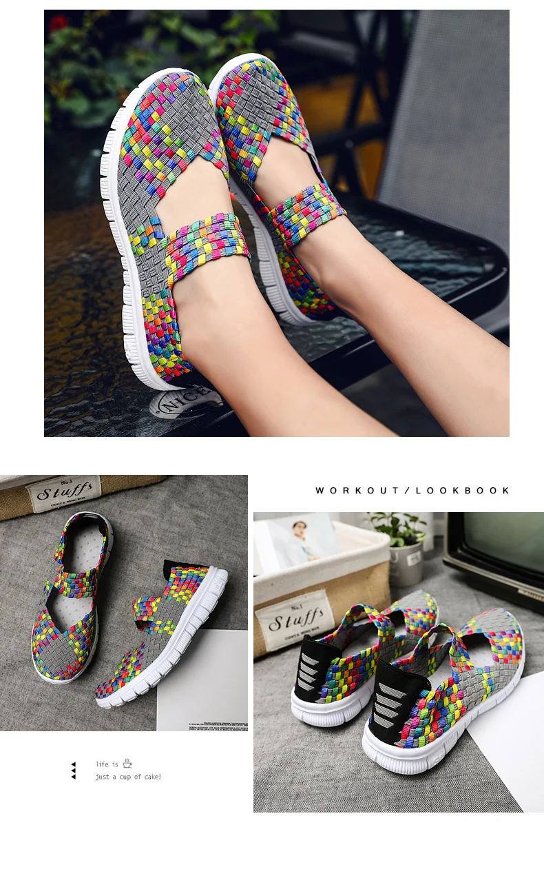 Пляжные уличные сандалии; Женские кроссовки ручной работы на плоской подошве; Дышащие легкие женские туфли на плоской подошве; Тканые неглубокие повседневные туфли