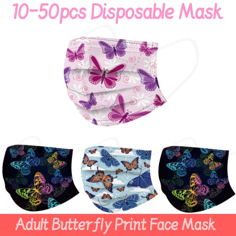 Маска для лица с принтом бабочки, одноразовая маска для лица для взрослых, унисекс маски для рта с принтом бабочки, 3-слойная маска для взрослых