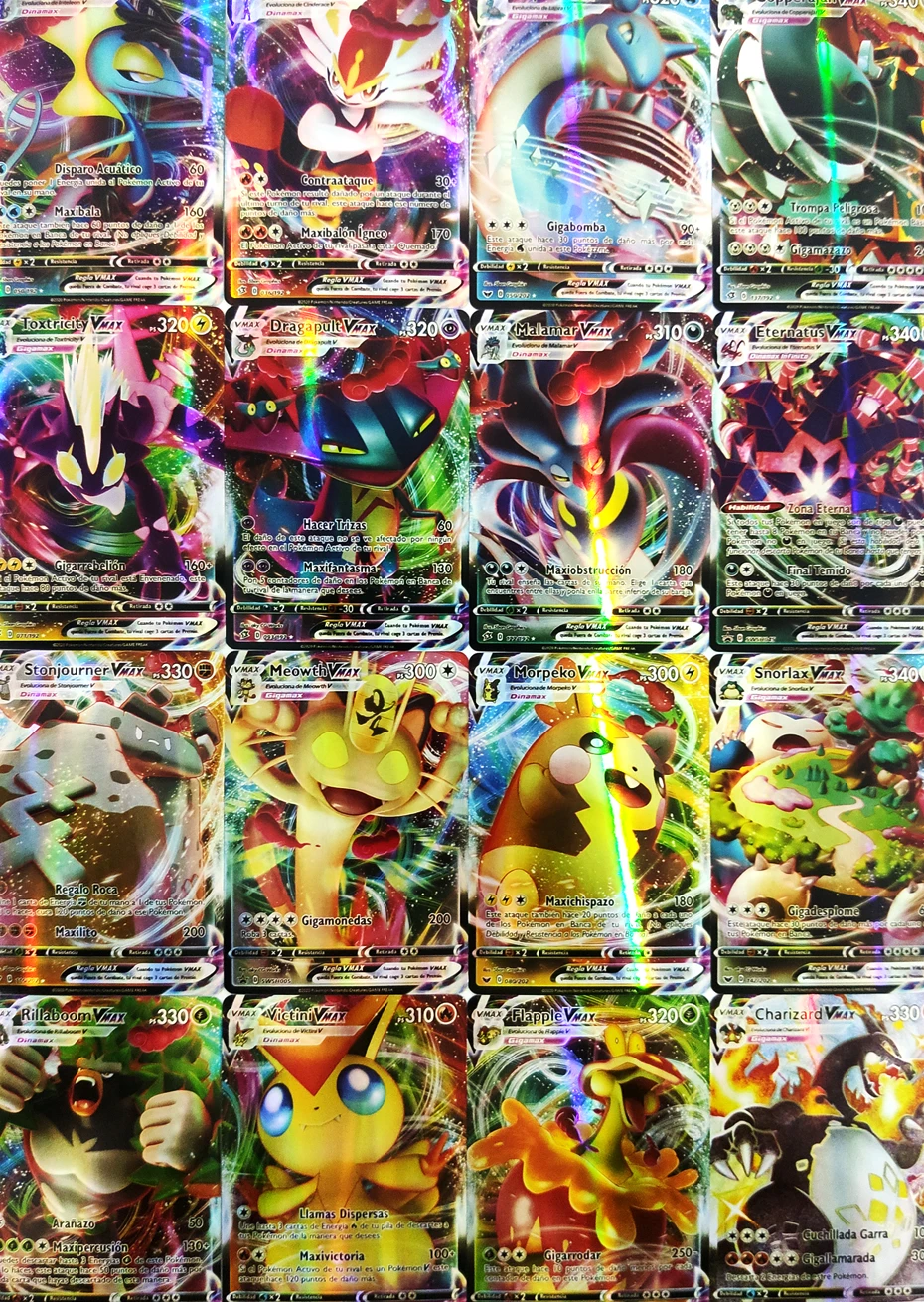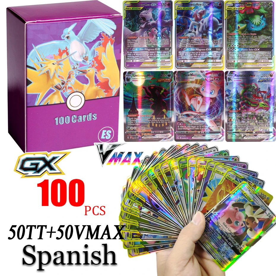 Карты Pokemon в испанском стиле, команда GX VMAX V VmaxTrainer, энергия, Сияющие карты, игра, золотой, серебряный, игрушка Espaol