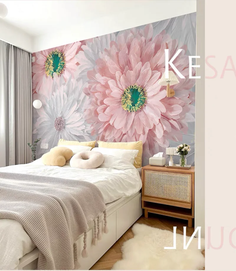 Bacaz нестандартный размер плюм африканская хризантема сухой цветок обои росписи для кровати фон 3D цветочные обои стикер декор