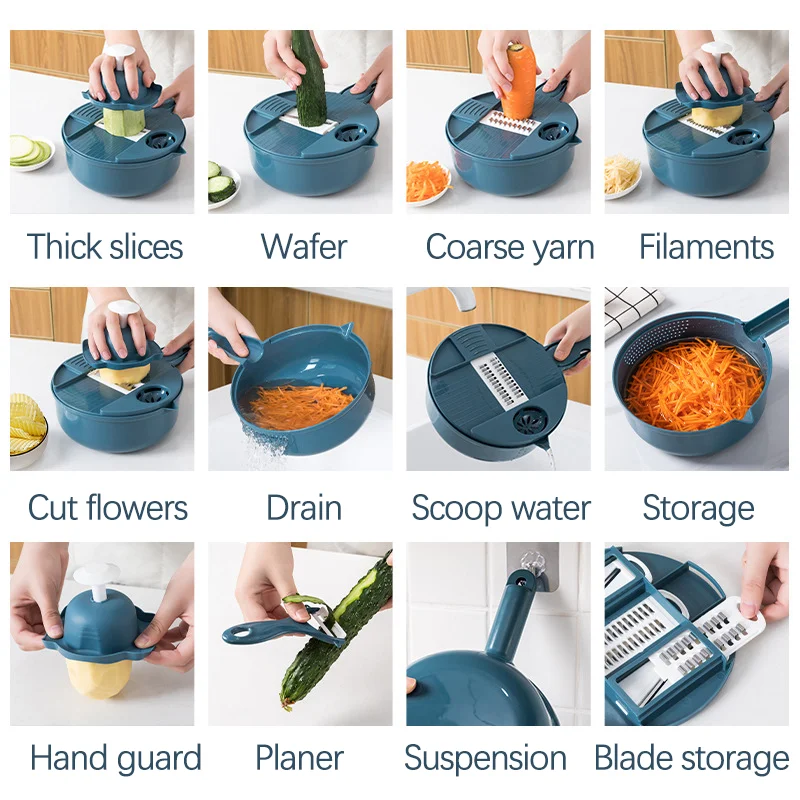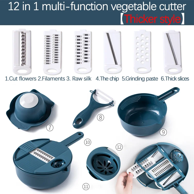 12 шт. многофункциональная овощерезка, измельчитель для моркови, картофеля, измельчитель, слайсер, терка для кухни, приготовление чеснока, инструмент для овощей