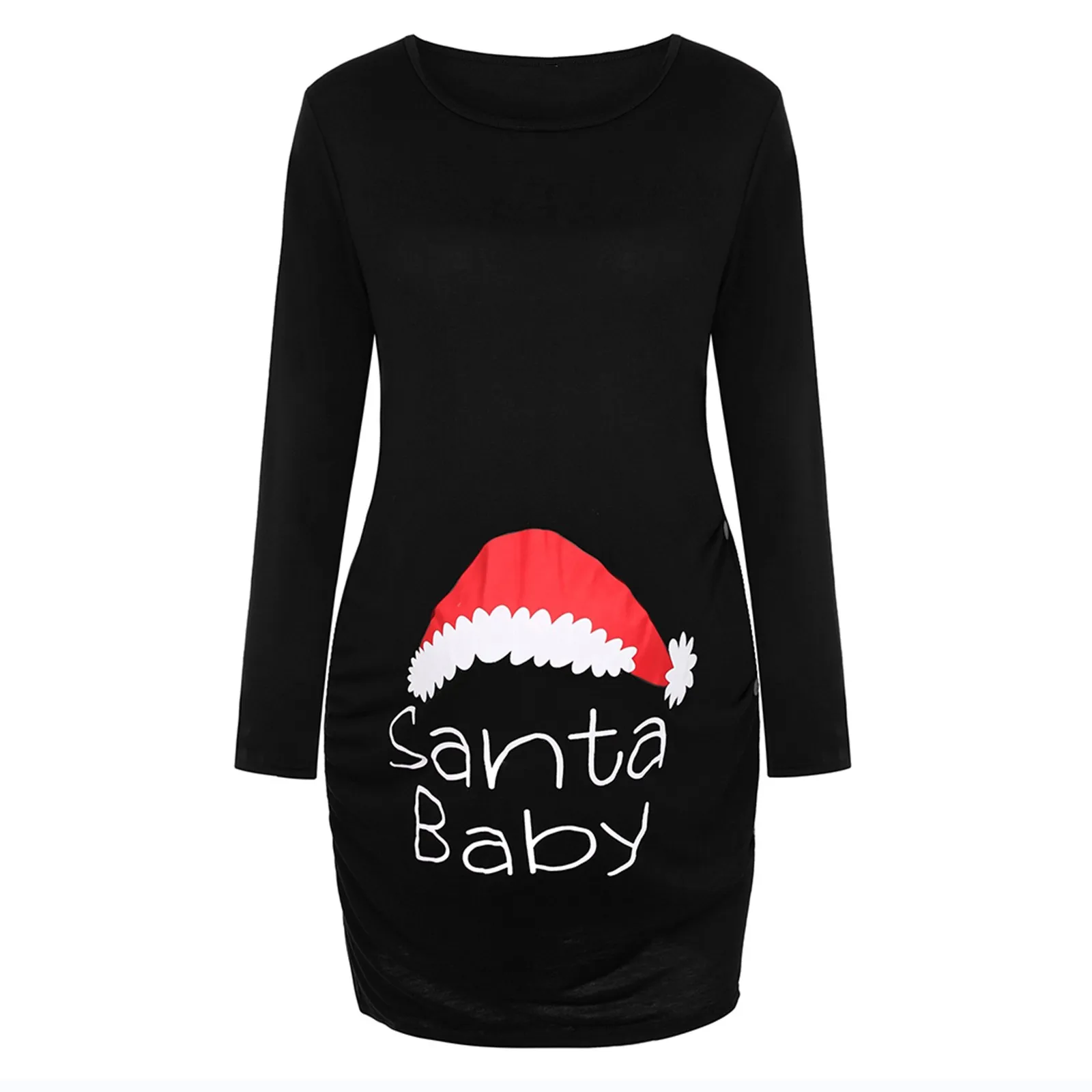 Рождественские платья для беременных с круглым вырезом и длинным ру...