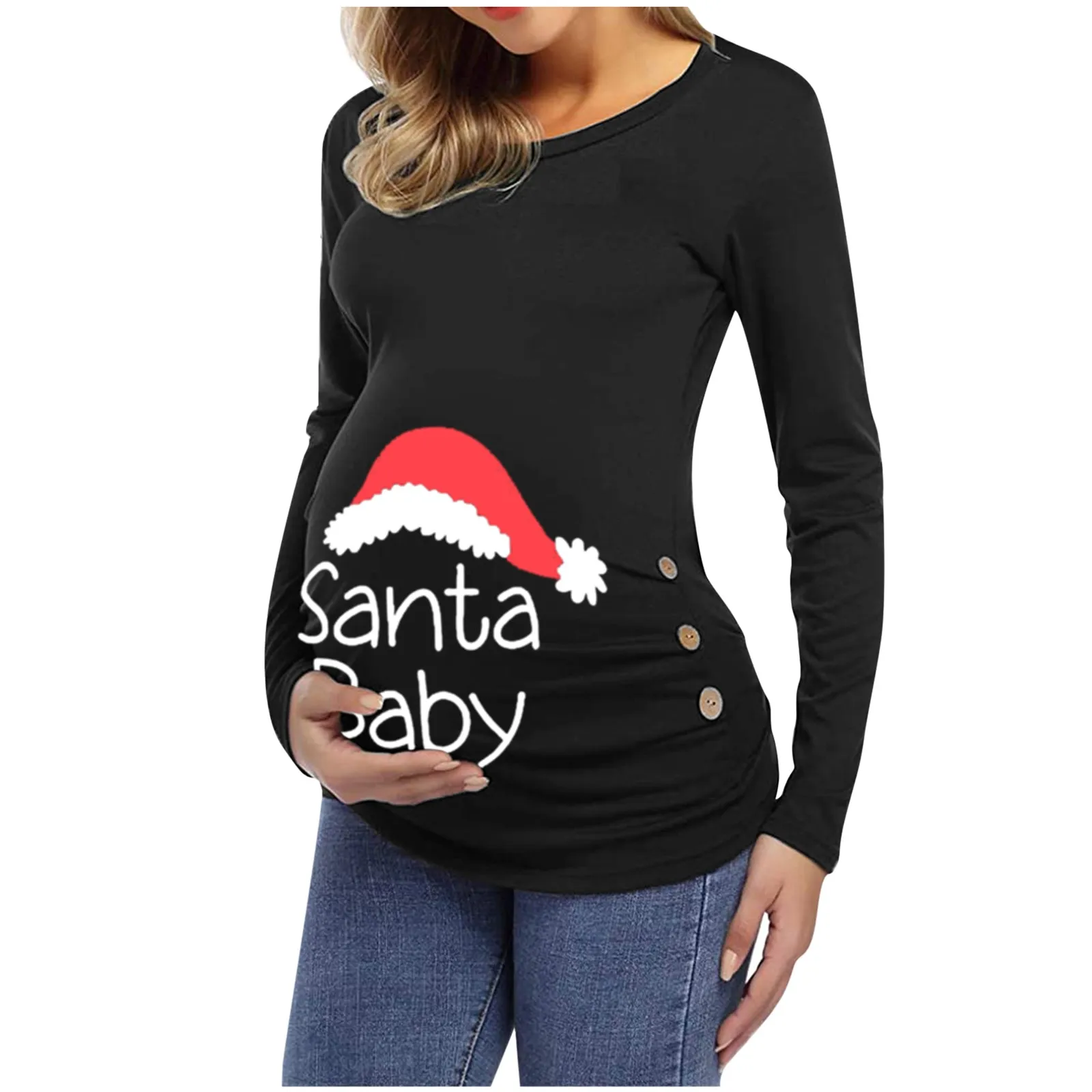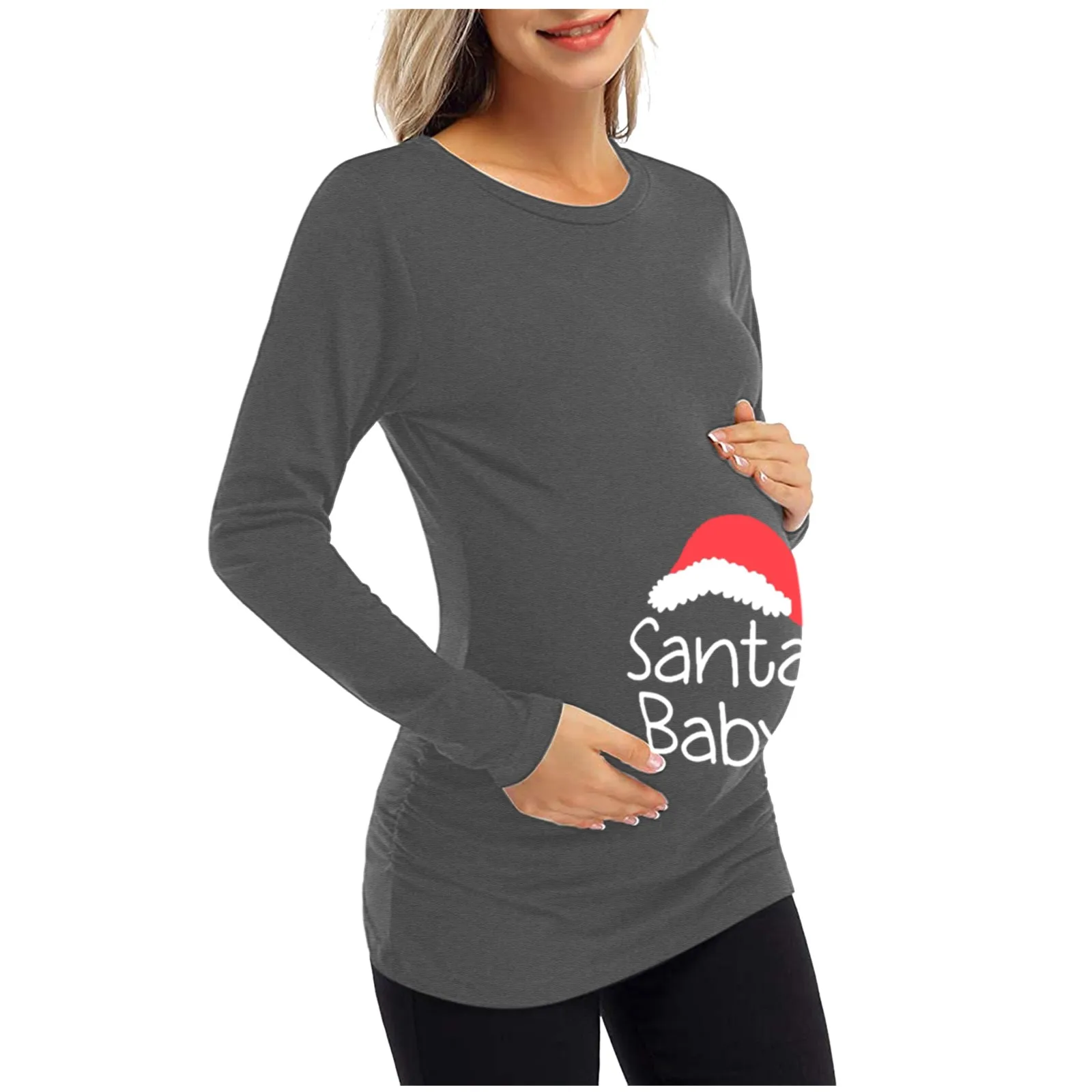 Футболка с рождественским рисунком для беременных женщин беременность Повседневная футболка с длинным рукавом с буквенным принтом туника топ платье Одежда для беременных