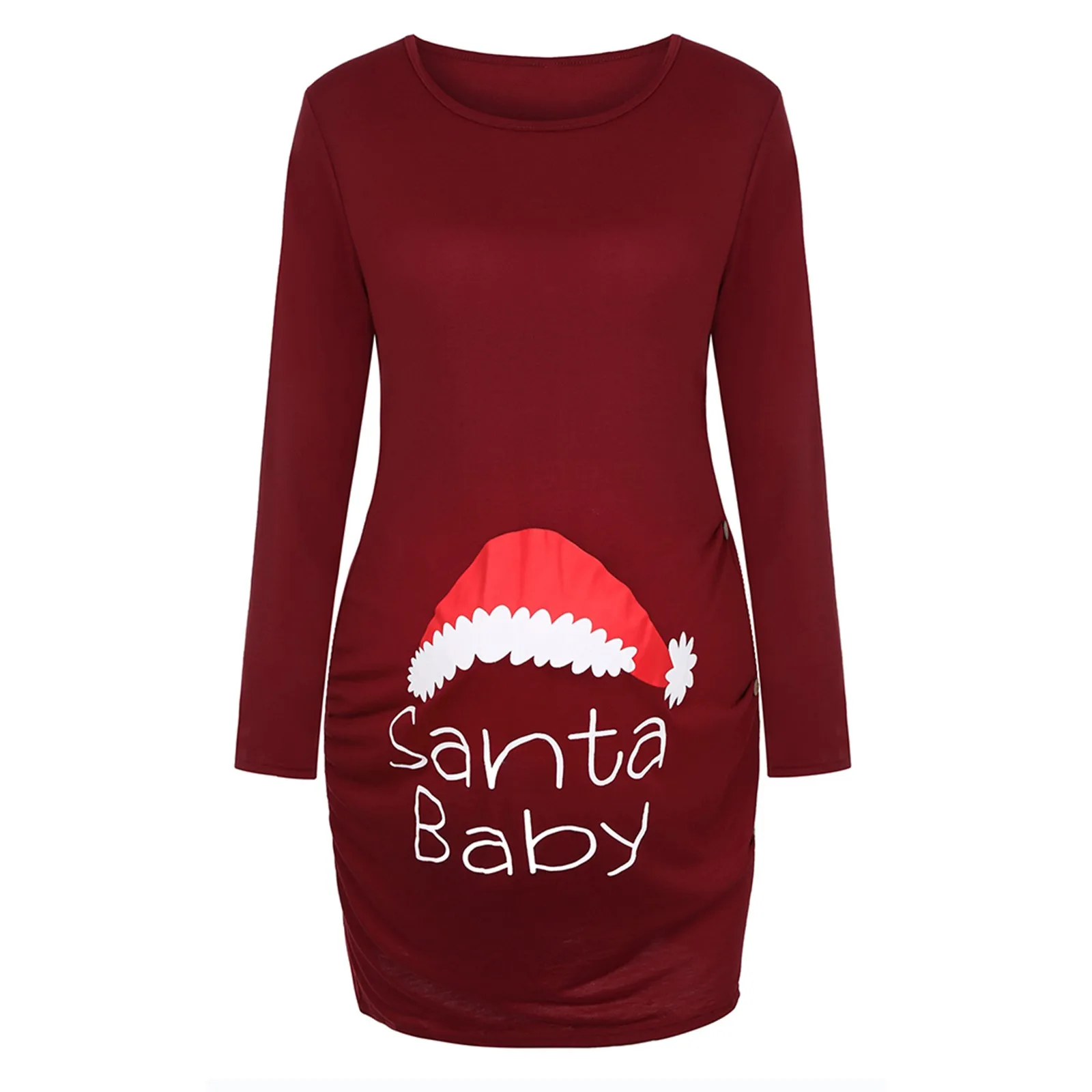 Рождественская Женская одежда для беременных Повседневная футболка с длинными рукавами и буквенным принтом туника топ платье