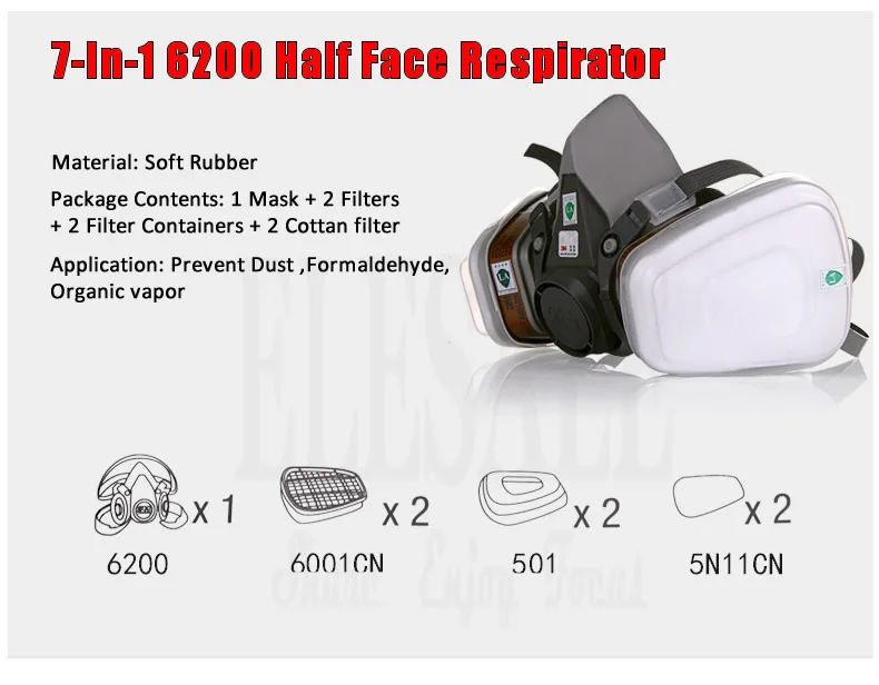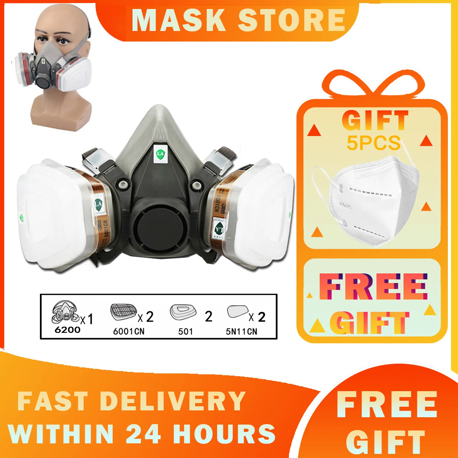 9 шт. в 1 посылка: 1x6200 маска + 2x6001 фильтрующий картридж + 2x501 крышка фильтра + 2x 5N11 хлопковые фильтры