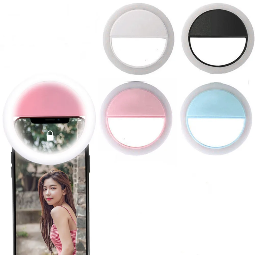Портативный светильник для ночной съемки телефона, светодиодный светильник для камеры с зажимом, кольцевой светильник для селфи, Usb-зарядка для всех телефонов