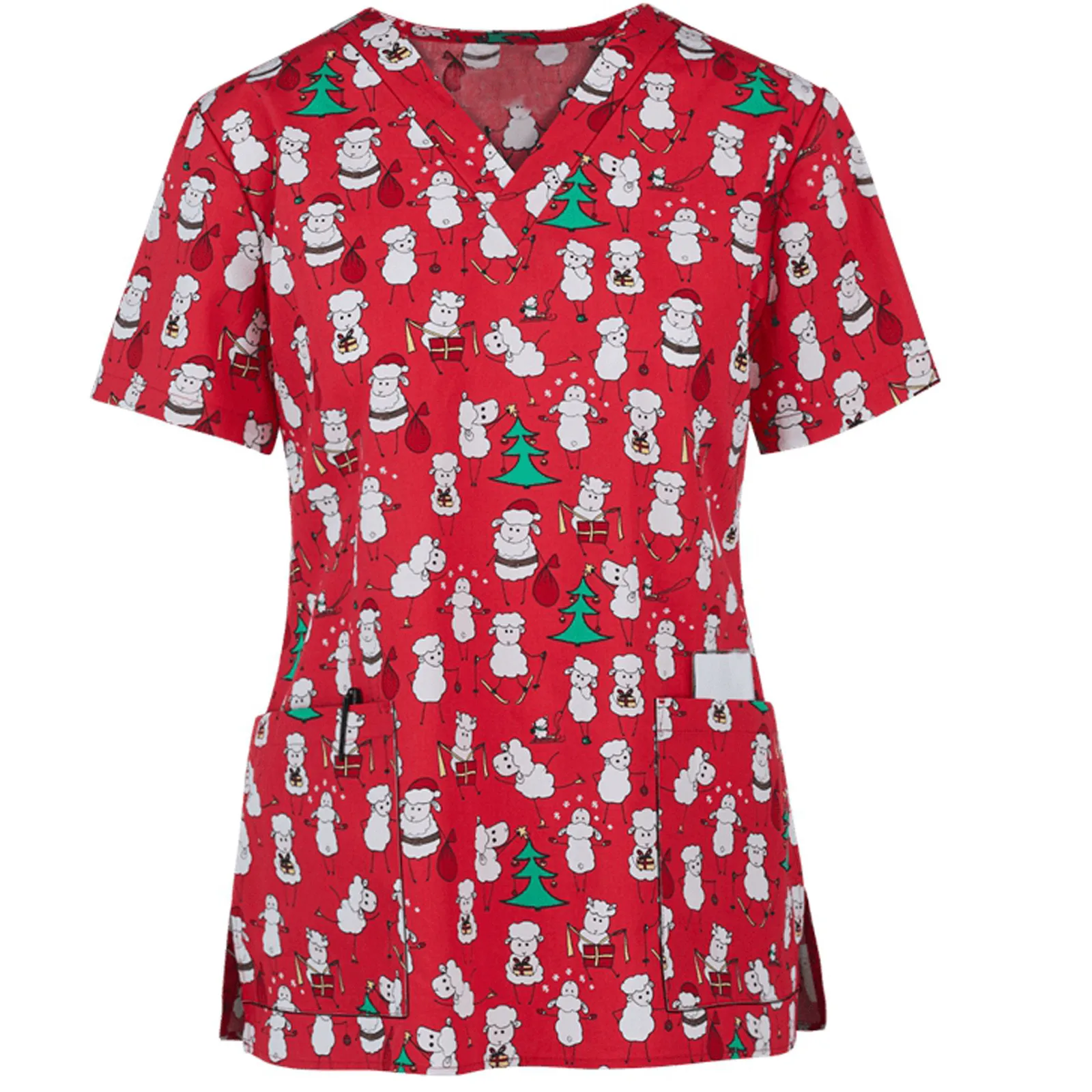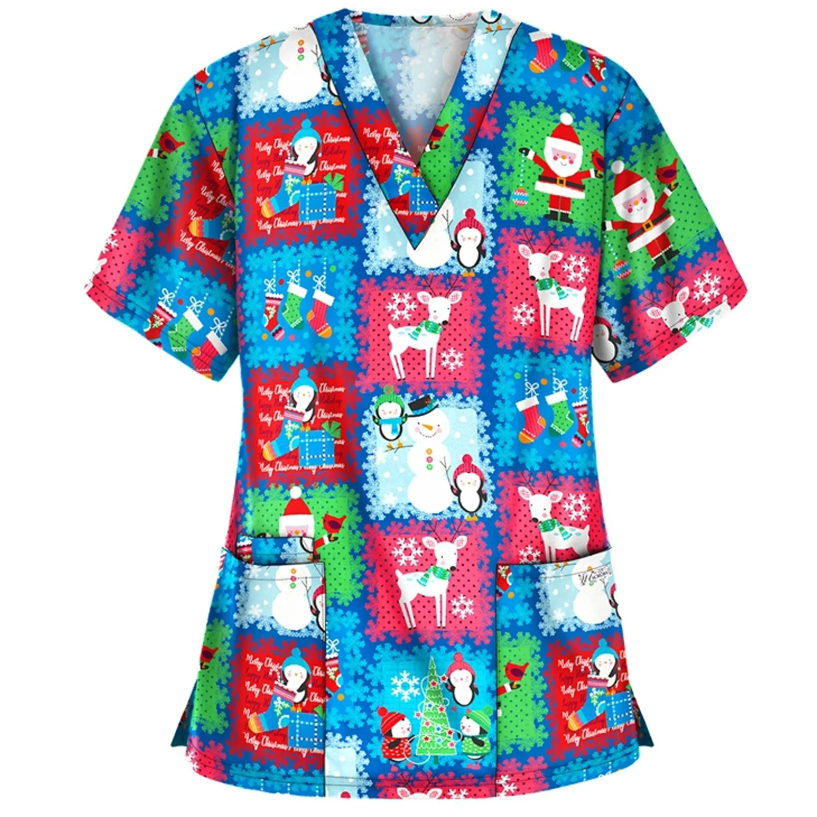 Женская медсестра, Женские топы с коротким рукавом и V-образным вырезом, Рождественская женская униформа, Ветеринария