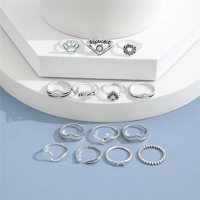 Набор женских колец в стиле ретро под старинное серебро, в готическ...