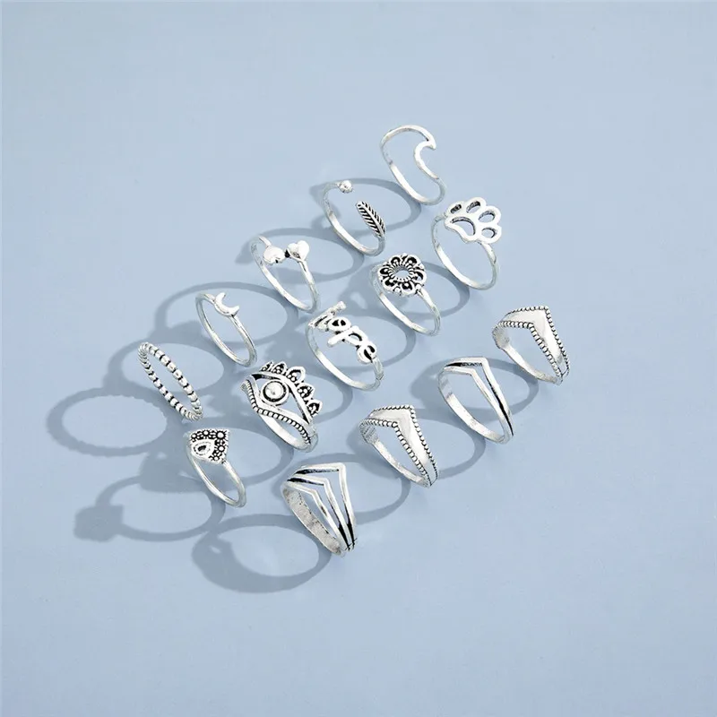 Набор Колец WUKALO женских, 14 шт.компл. в стиле бохо, винтажные ко...