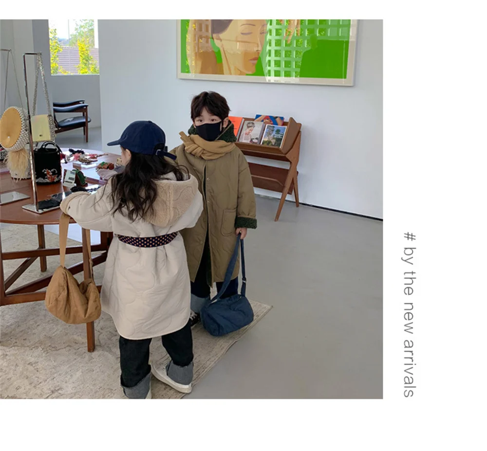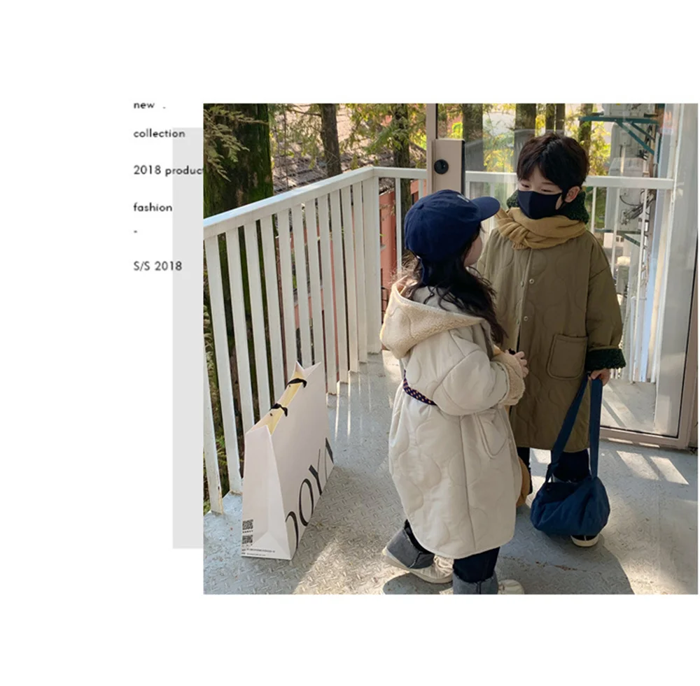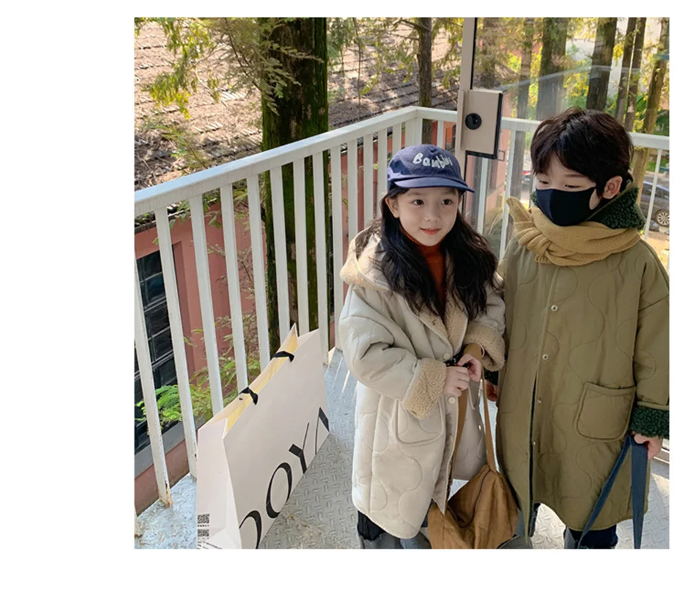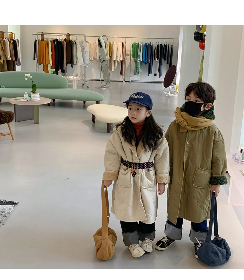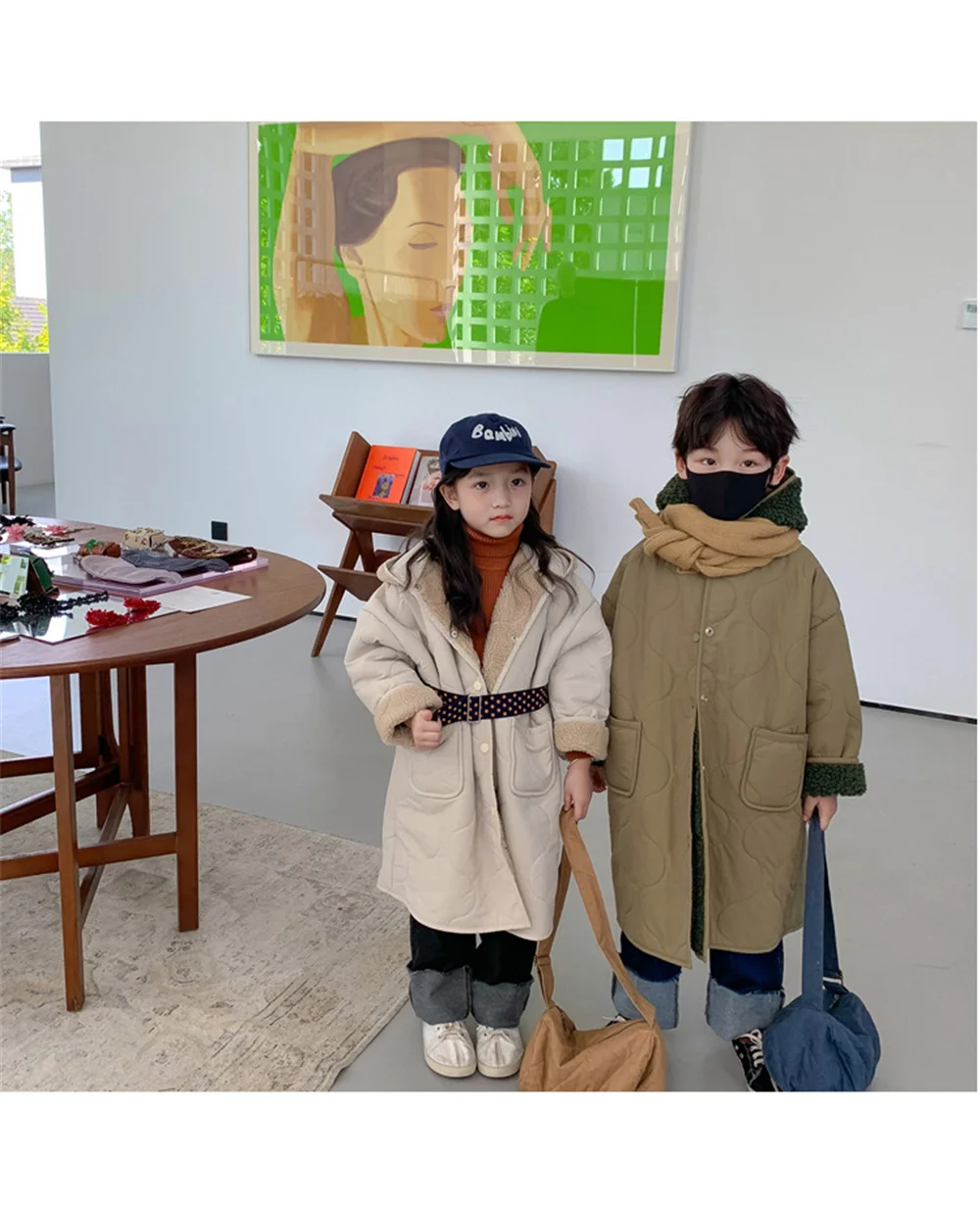Детская куртка с капюшоном и флисовой подкладкой, длинная теплая куртка унисекс из берберского флиса, в Корейском стиле, зима 2021