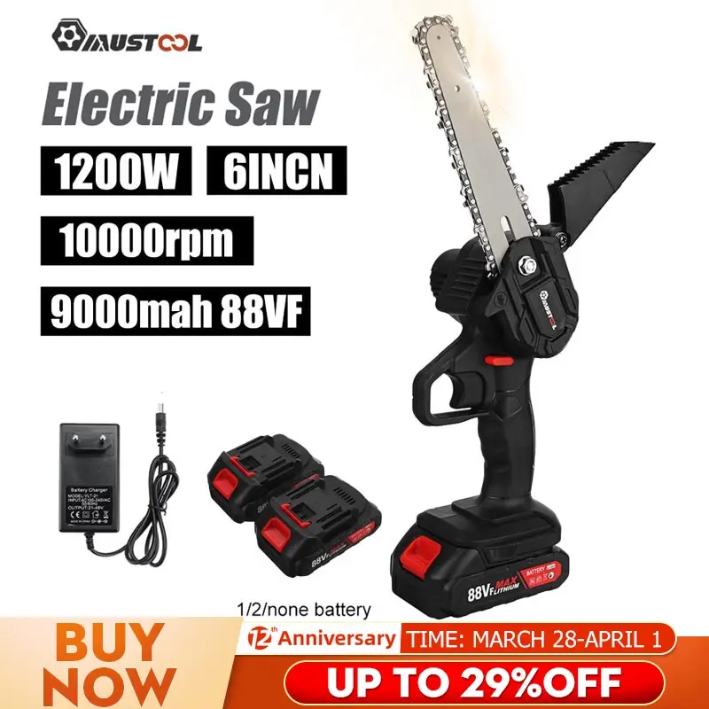Миниатюрная Электрическая цепная пила mustools, 1200 Вт, 6 дюймов, перезаряжаемая обрезка сада, лесопила, деревообрабатывающий инструмент, резак для дерева для Makita 18 в