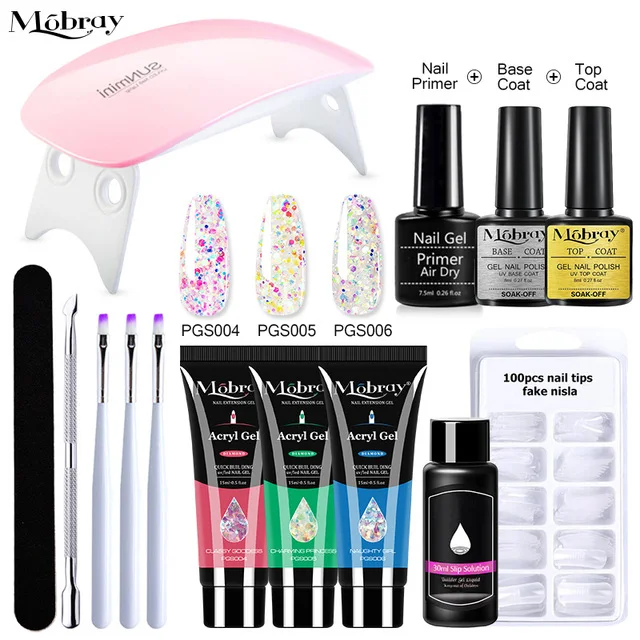 Набор для наращивания ногтей Mobray, набор блестящих прозрачных цветов для быстрого наращивания ногтей, акриловый Гель-лак для УФ-лампы, 15 мл
