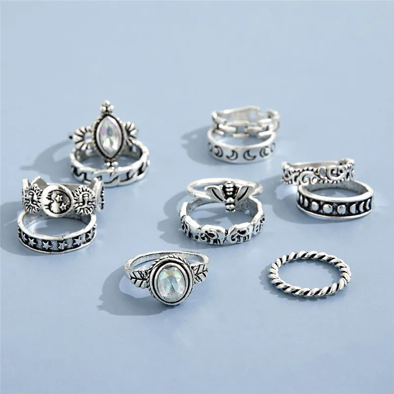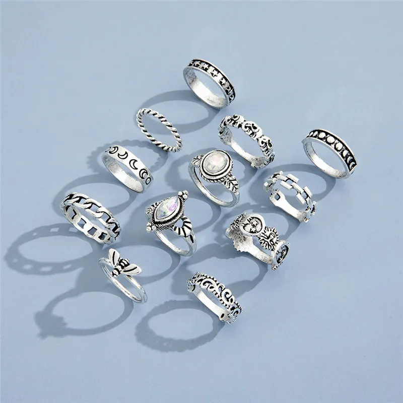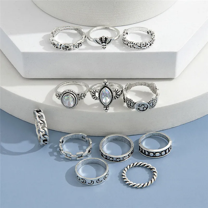 Sindlan 12 шт. винтажные серебряные кольца с кристаллами для женщин...