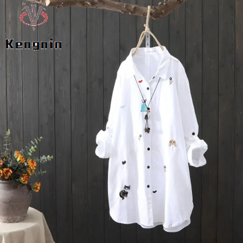 Женская Осенняя блузка с вышивкой, белая Повседневная офисная блузка, модель KN311, размеры до 5XL