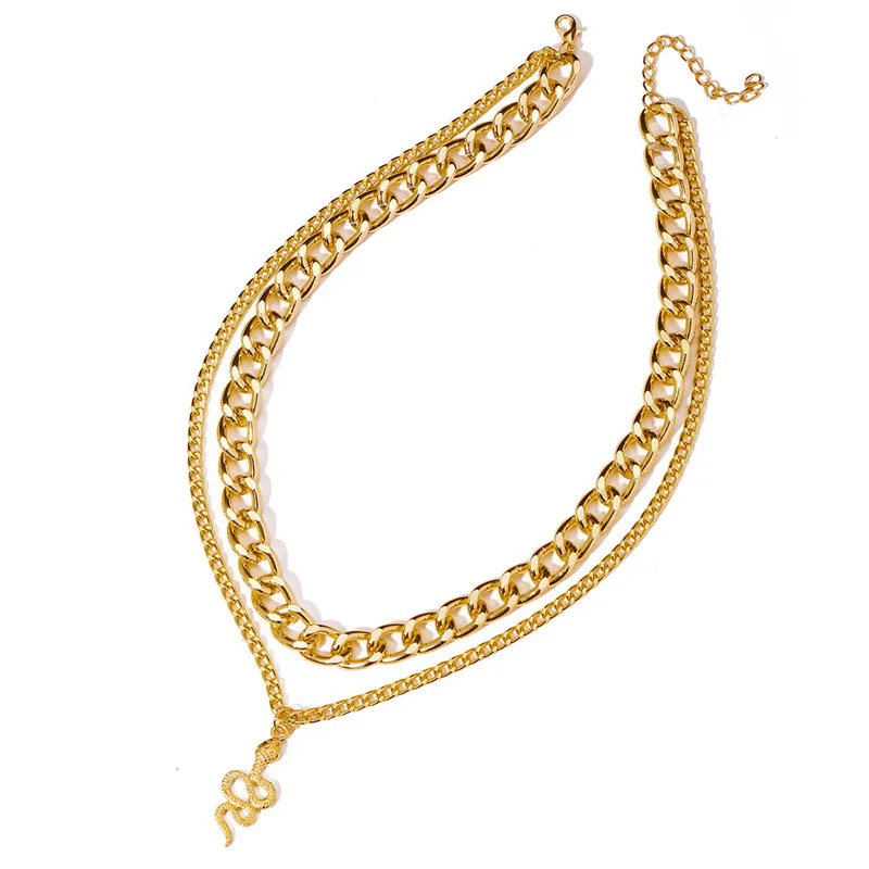 Женское многослойное ожерелье-цепочка с подвеской в виде змеи