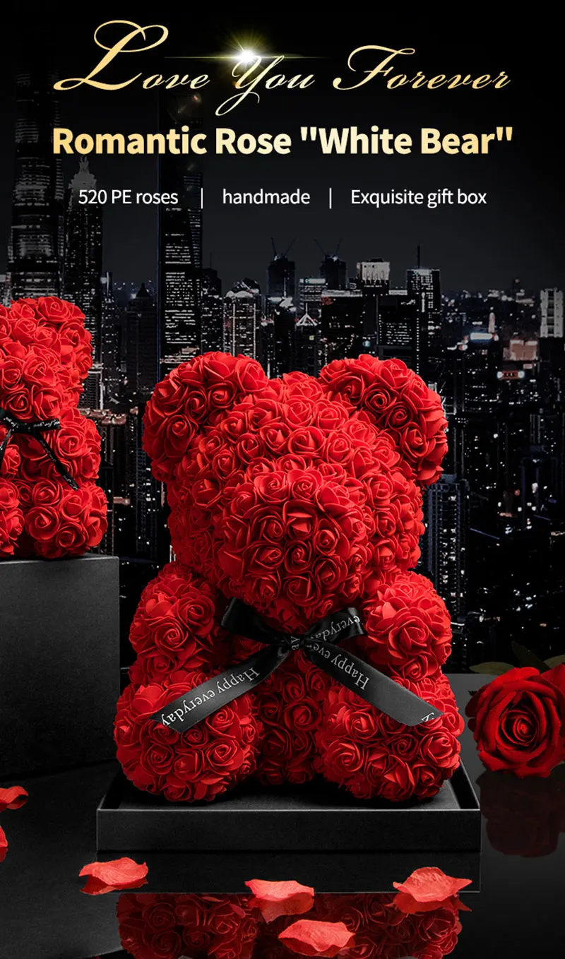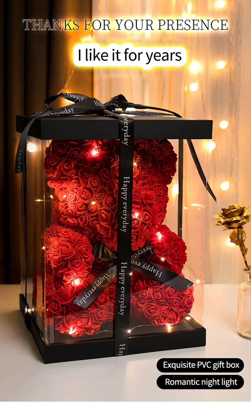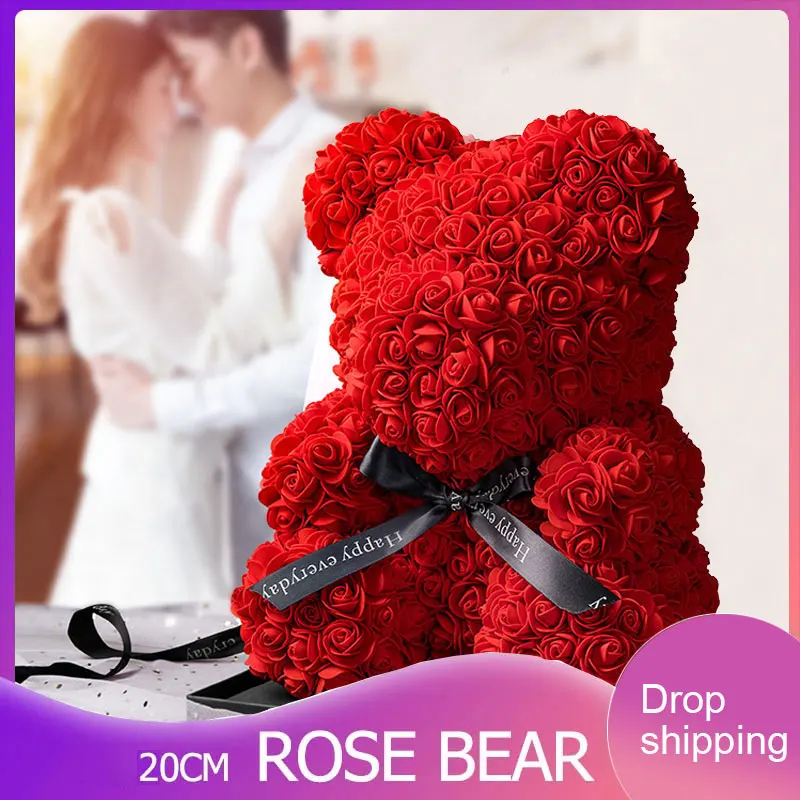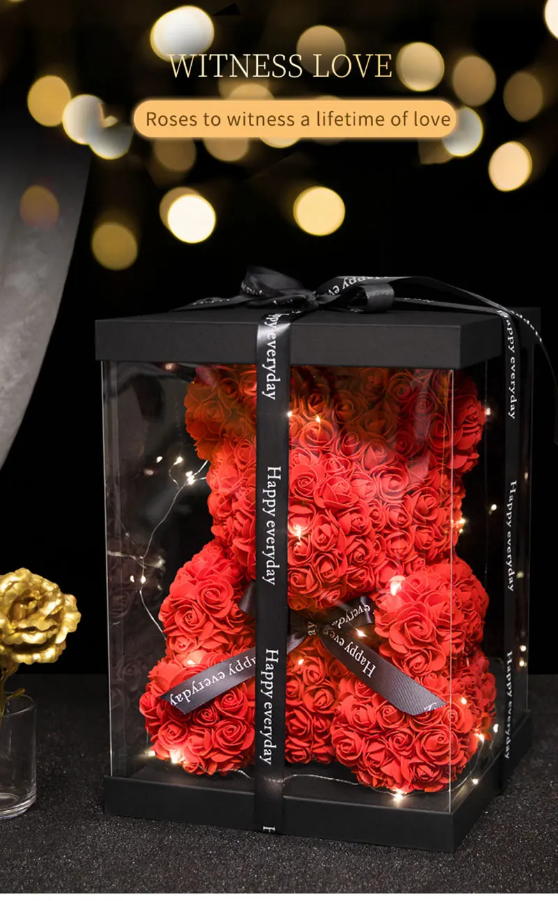 Прямая поставка, Роза 20 см40 см, мишка тедди с коробкой, искусственный медведь, роза, День Святого Валентина, подарок на день матери для жены