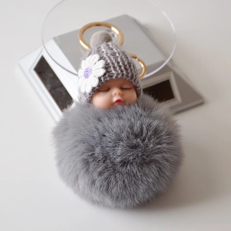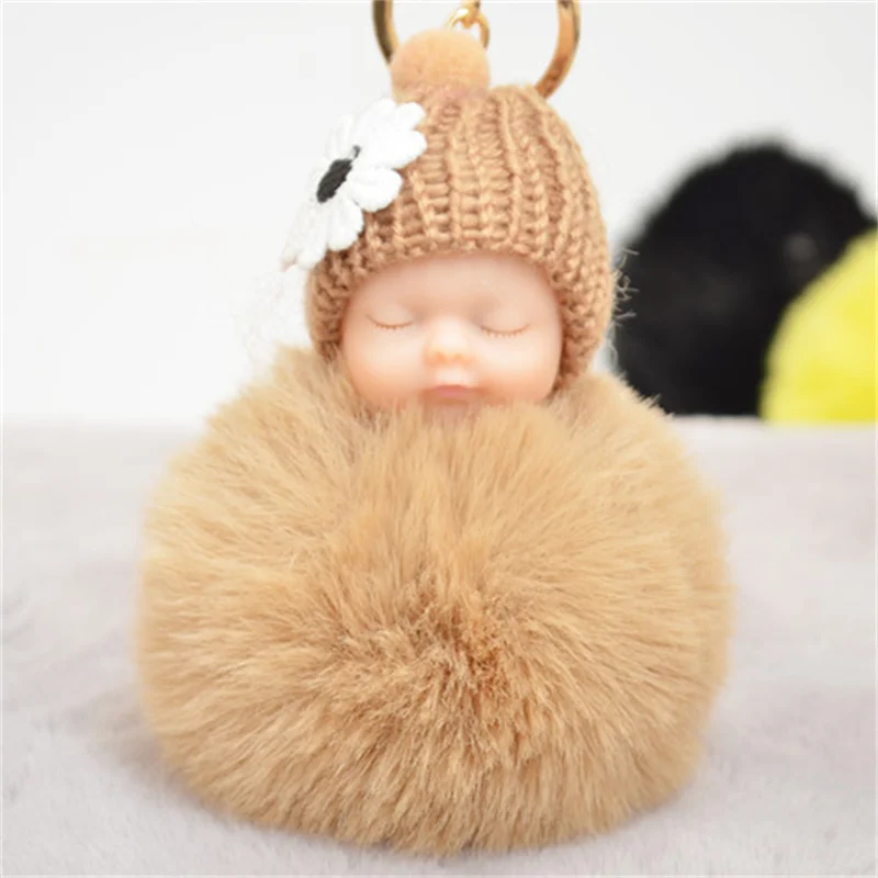 Детская кукла, игрушка, Прямая поставка, милые брелки для ключей в виде спящего ребенка, для женщин, сумка, мягкий помпон из искусственного меха, плюшевые брелки