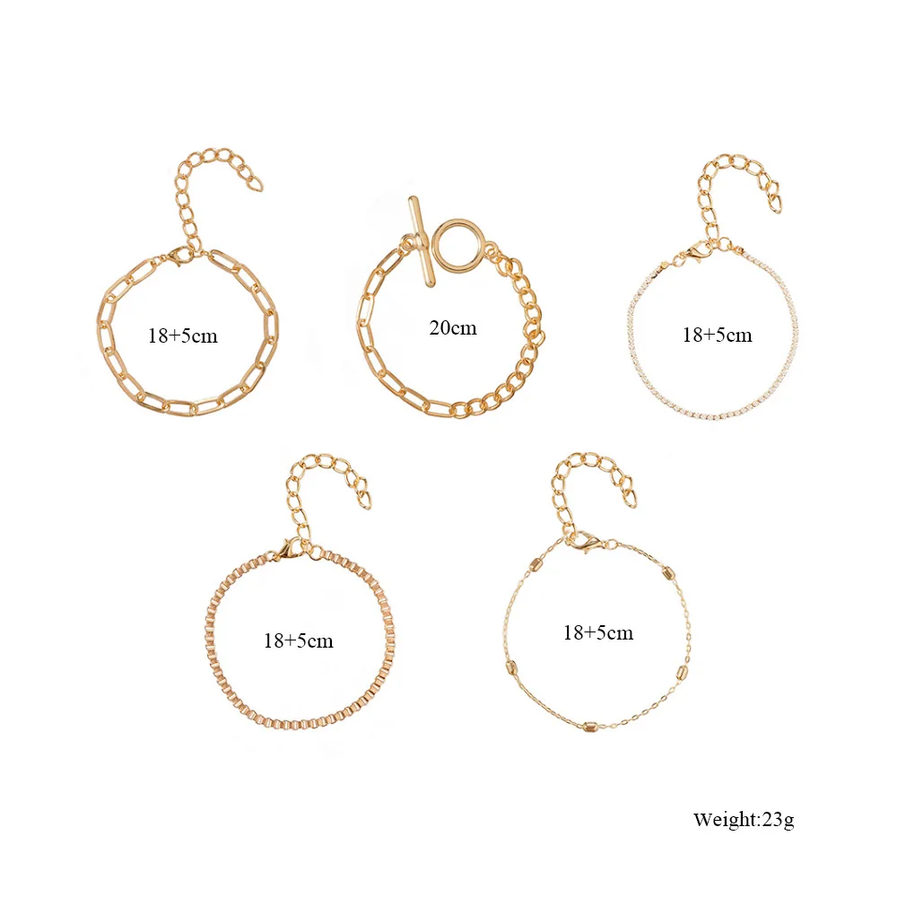 5 шт.компл. модный металлический браслет с геометрической пряжкой и...