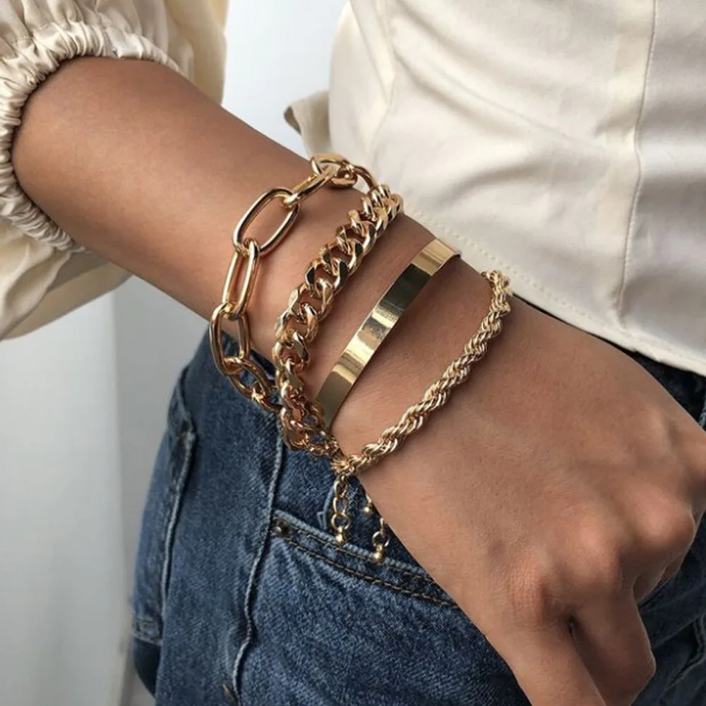 Набор женских многослойных браслетов-цепочек, стразы в стиле панк