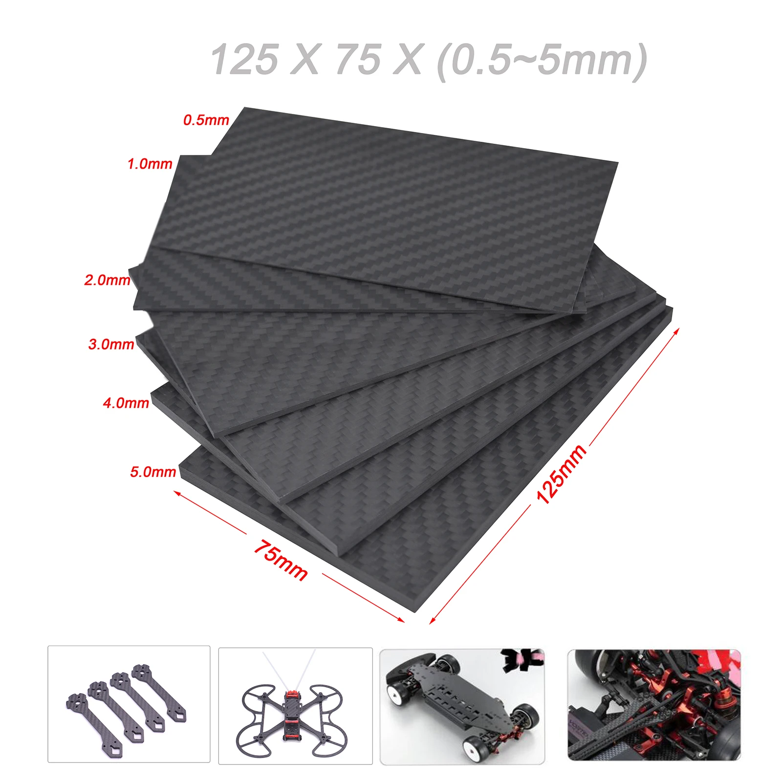 Лист пластины из углеродного волокна 125 мм X 75 мм 0,5 мм1 мм2 мм3...