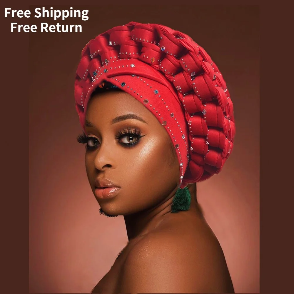 Уже сделанный автоматический тюрбан Gele для женщин Aso Oke, африка...