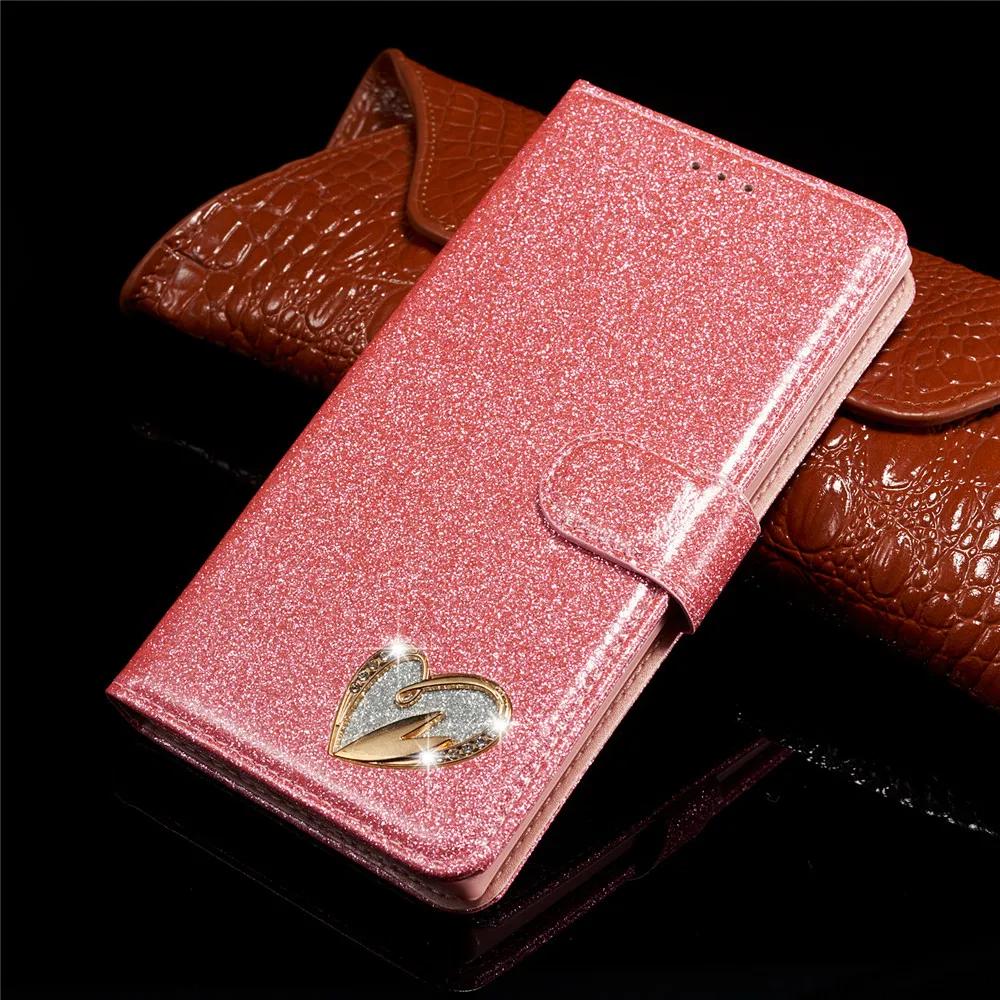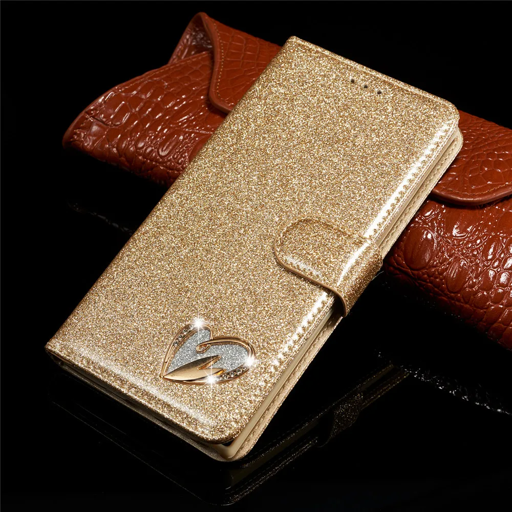 Блестящий чехол для Huawei P30 P20 Lite кожаный чехол-книжка Love J...