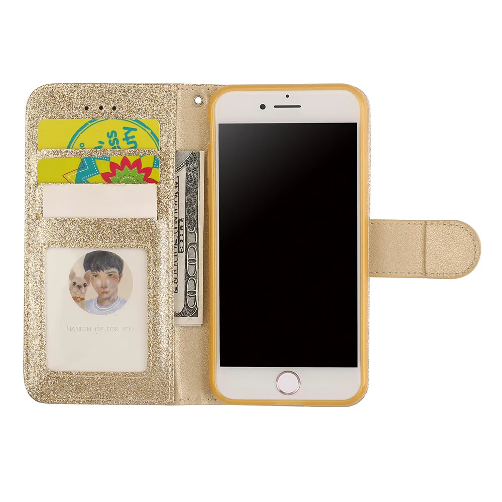 Новый стильный блестящий чехол-книжка с блестками для iPhone 13, 8, 7, 6S, 6 Plus, 5 детской модели SE 2020, 12Pro, 12 Mini, 11 Pro, XR, X, XS, Max, 13Pro, кожаная книга W
