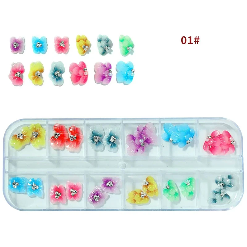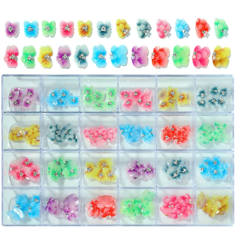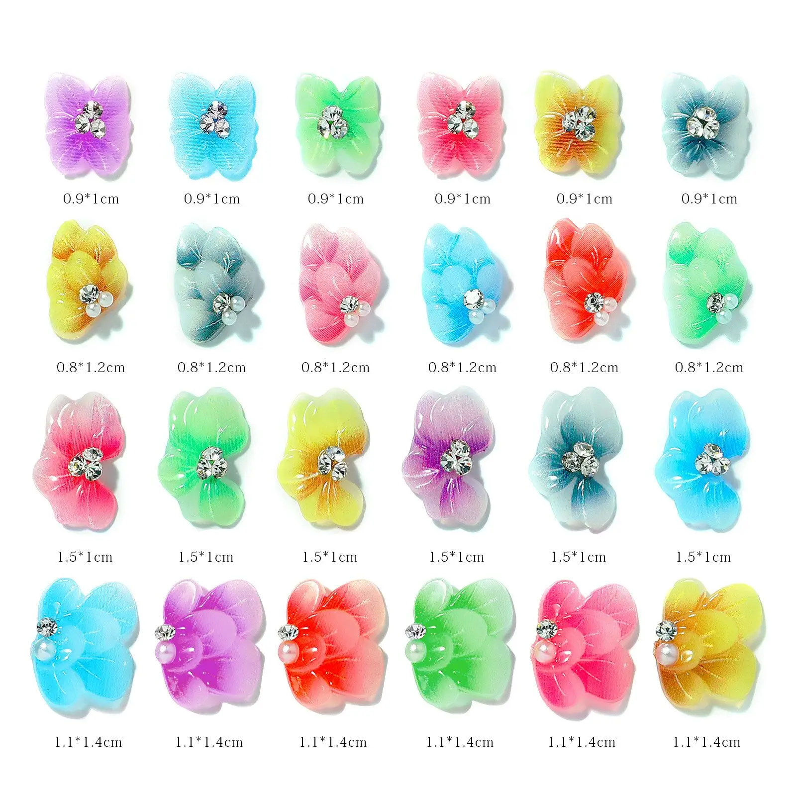 2021 акриловые цветы, бабочки, искусственные ногти, 3D ювелирные изделия, Смешанная форма, стразы с кристаллами, нажимные наклейки, акриловое гелевое украшение B353
