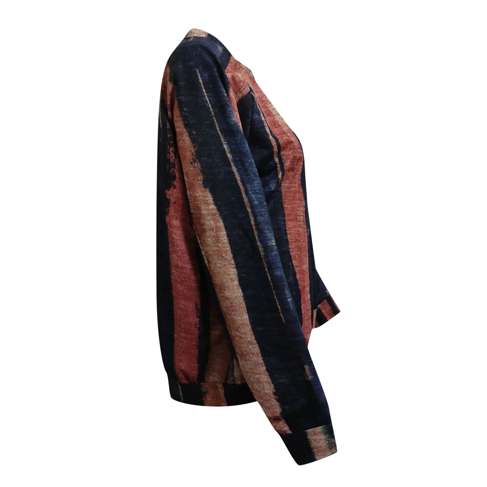 Женская винтажная блузка с круглым вырезом, длинным рукавом и принт...