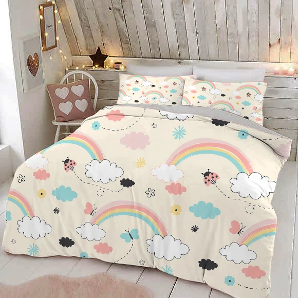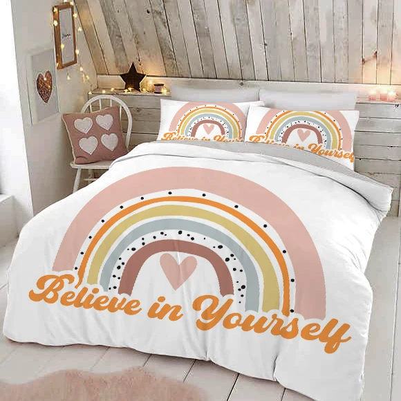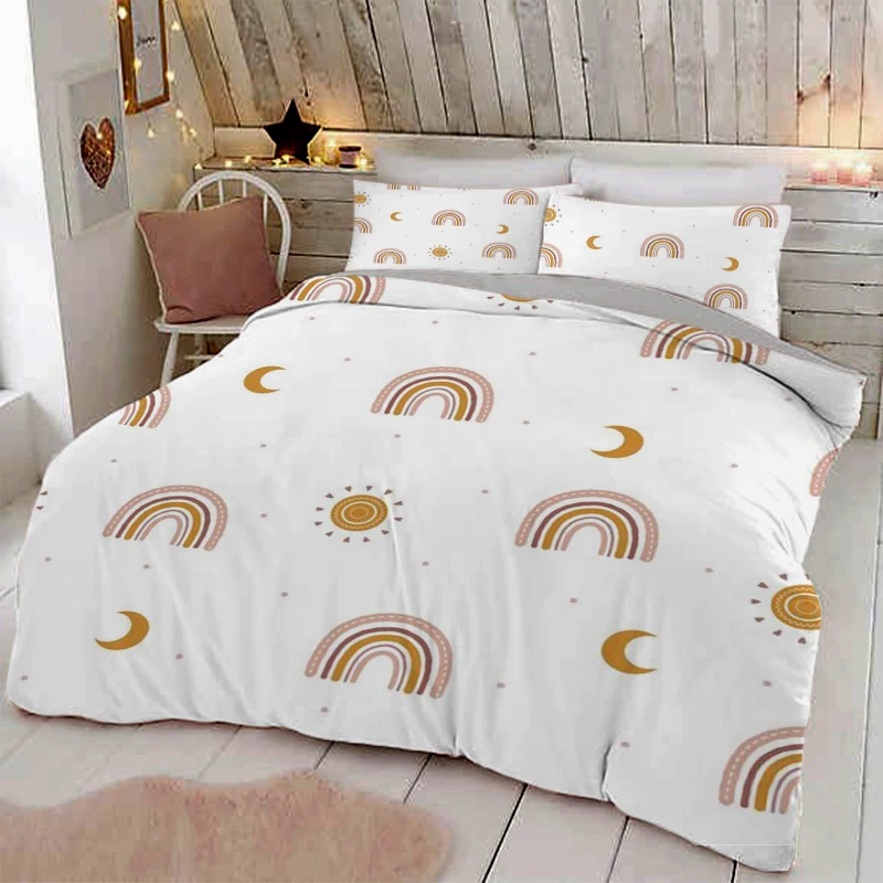 Детский комплект постельного белья, с рисунком радуги, пододеяльник для взрослых и детей, 150x200 135x200, одна наволочка, всесезонное
