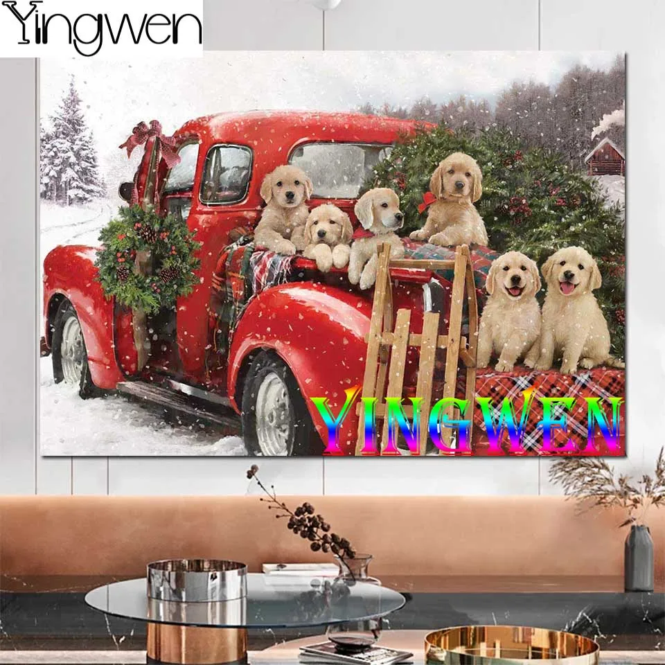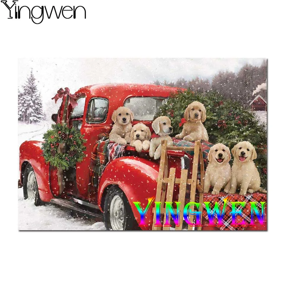 Вермонт Рождественская компания щенков Праздничная езда Алмазная Картина Вышивка крестом 5D полная Алмазная вышивка подарки на новый год 2022
