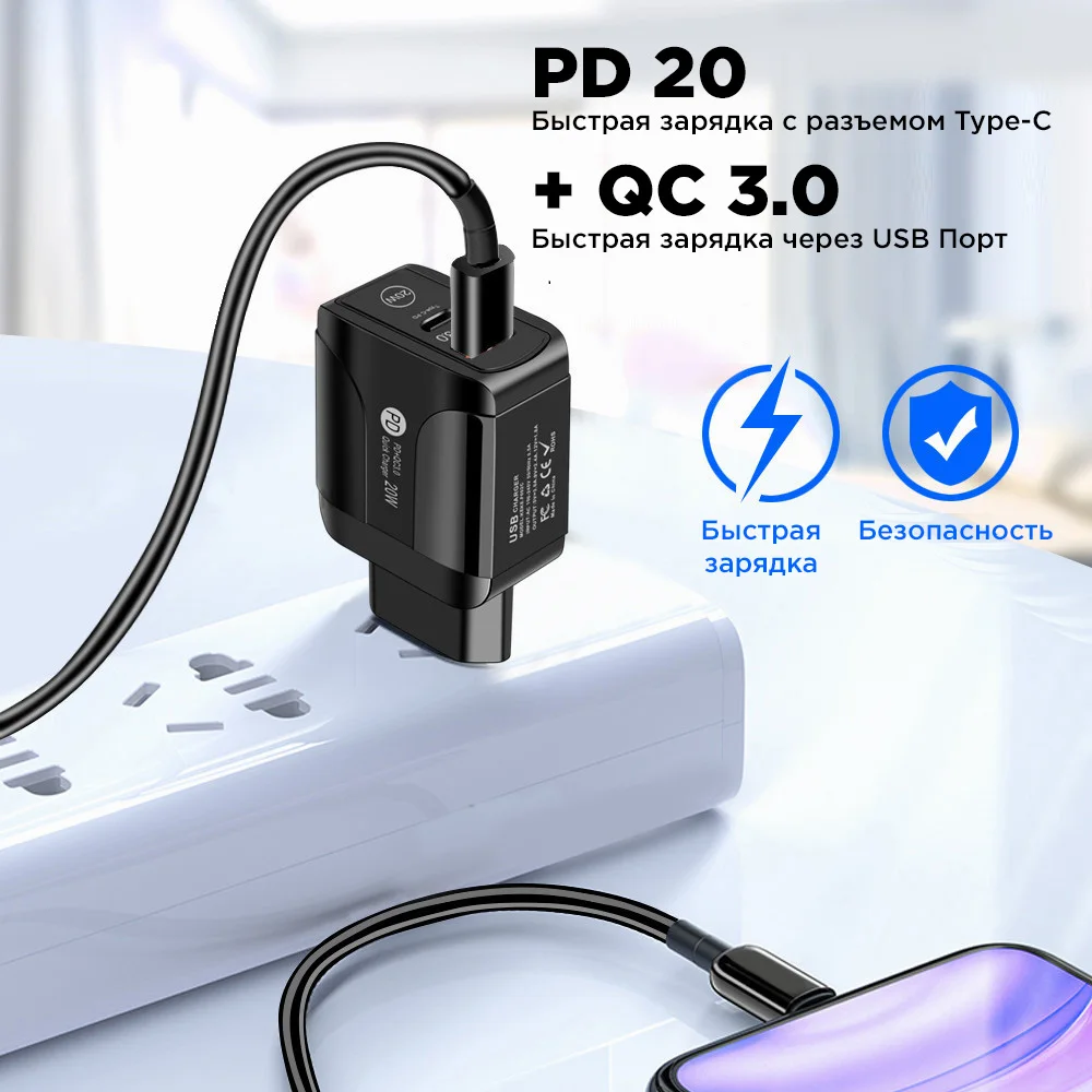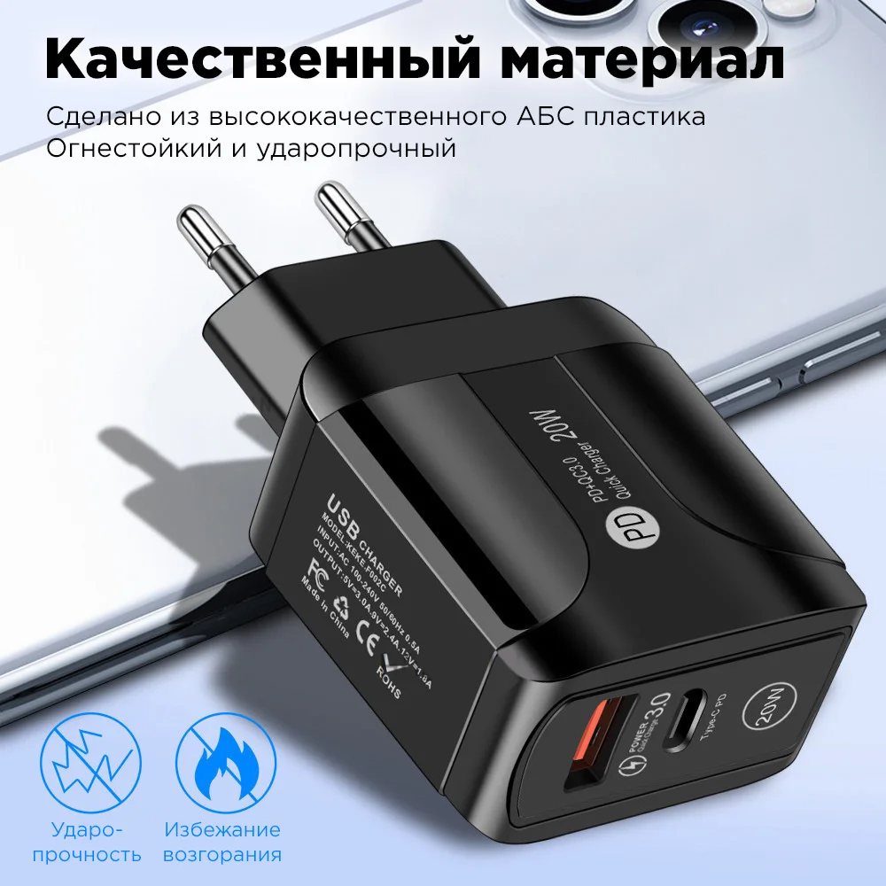 Быстрая зарядка PD20W + QC3.0 Быстрая зарядка для iPhone12 зарядное...