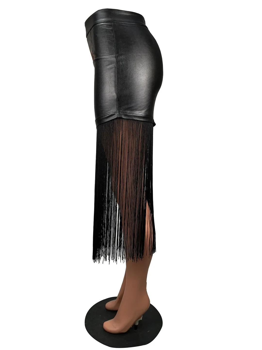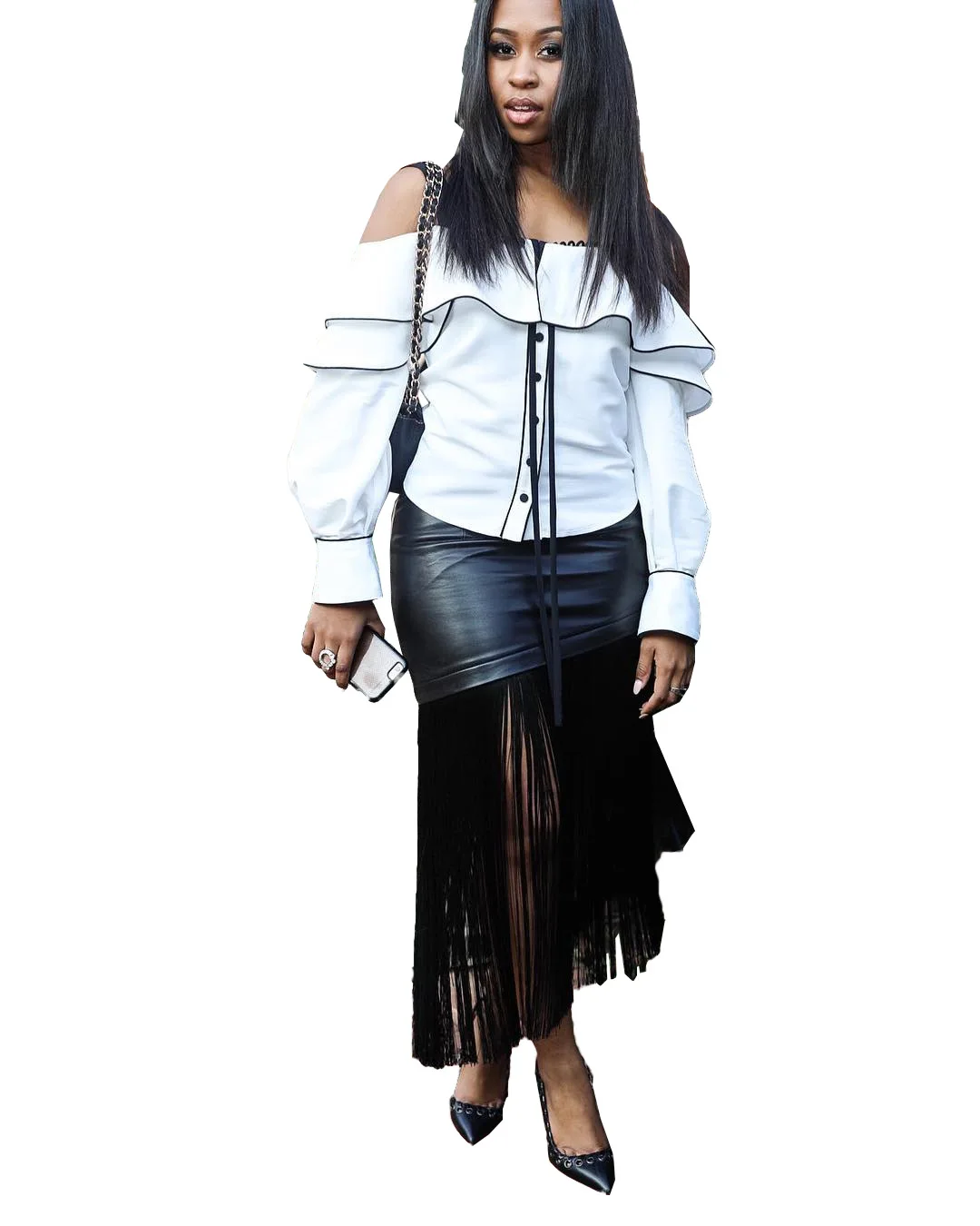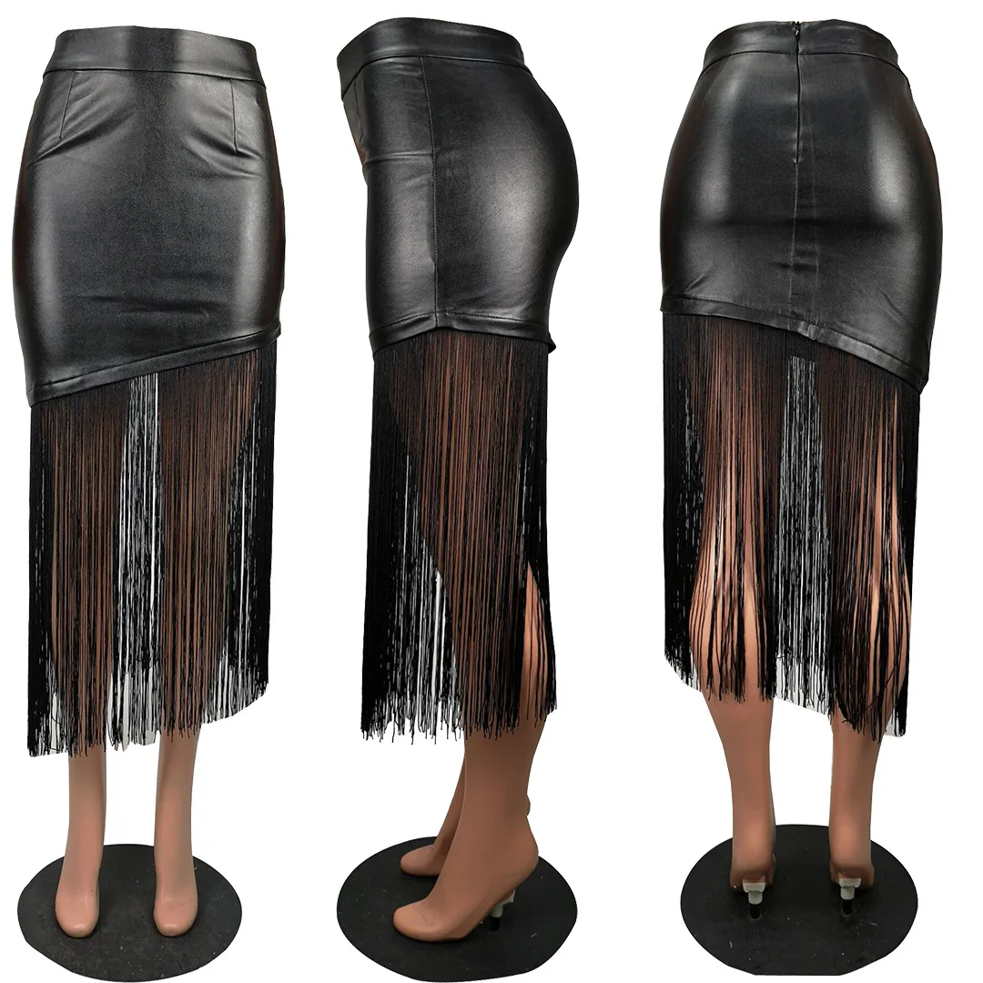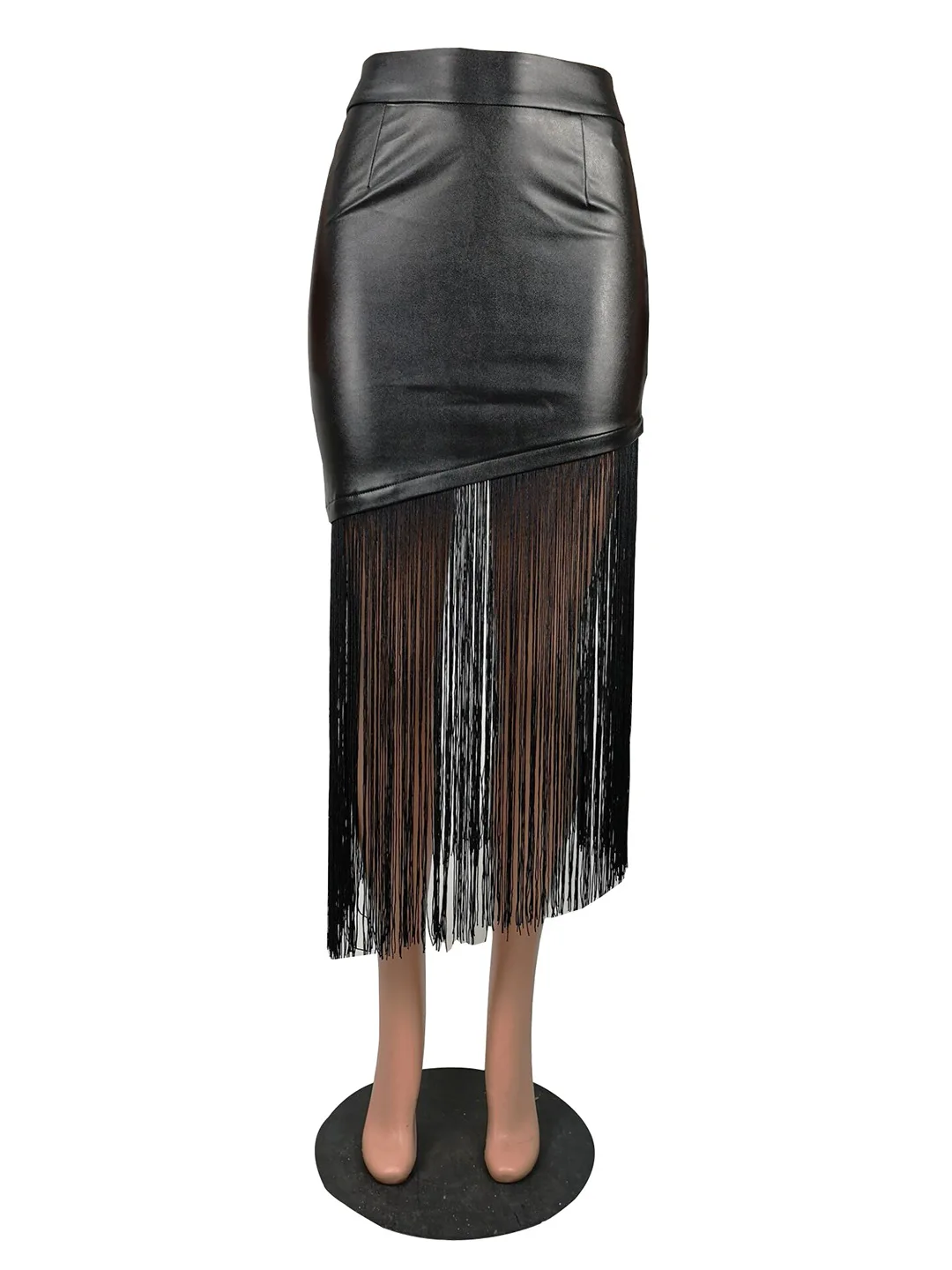 Новейший дизайн сексуальная юбка с бахромой Женская мода черная юбка из искусственной кожи неправильной формы африканская одежда 2021 Женская юбка средней длины