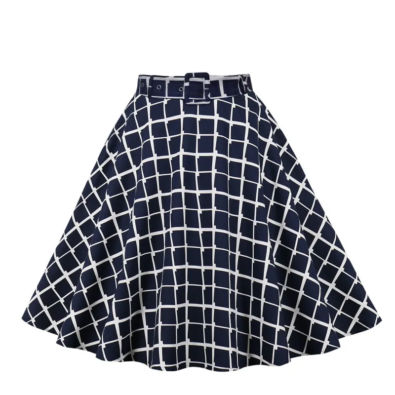 Женская юбка, летняя клетчатая юбка с высокой талией в стиле ретро, юбка трапециевидной формы, Повседневная универсальная юбка средней длины, новая пышная хлопковая юбка, Vestidos 2021USD 19,4/Шт/Лот 1