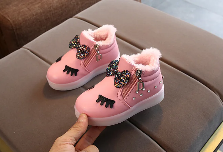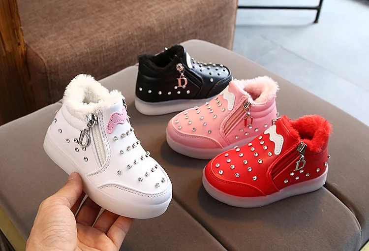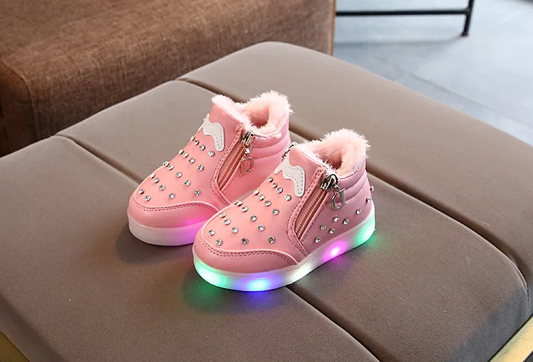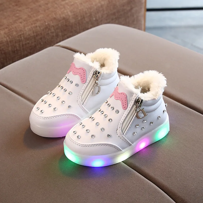 Зимние ботинки для девочек, детские кроссовки со светодиодами для детей, Повседневные Плюшевые ботинки для девочек принцесс, детские спортивные с подсветкой, теплая светящаяся обувь для малышей