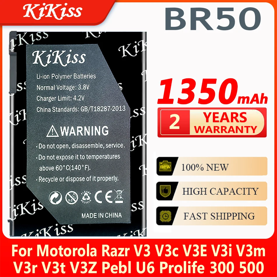 Аккумулятор KiKiss 1350 мАч BR50 для телефона Motorola Razr V3 V3c V3E V3i V3m V3r V3t V3Z Pebl U6 Prolife 300 500 BR 50 BR-50
