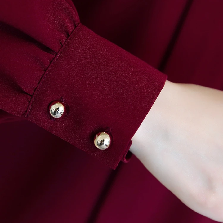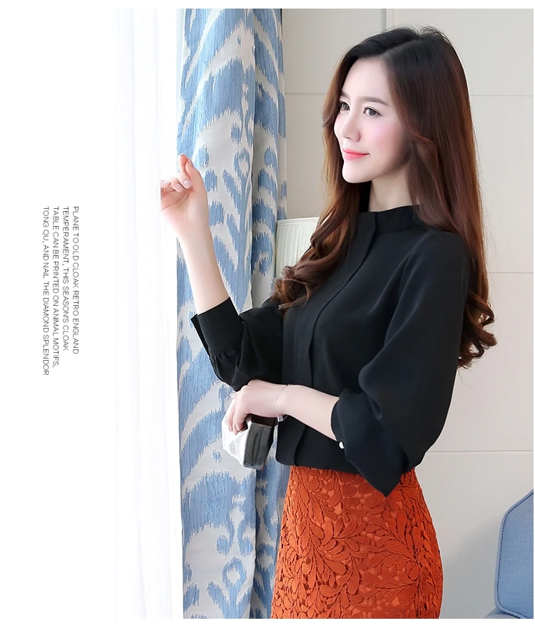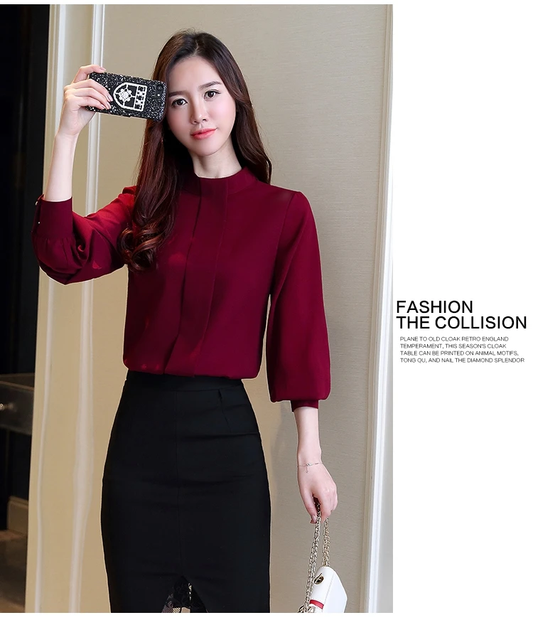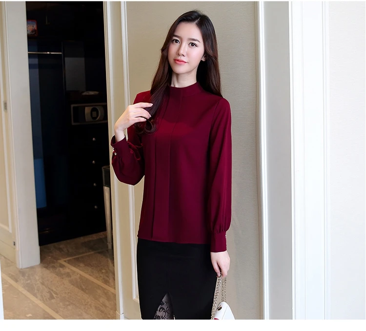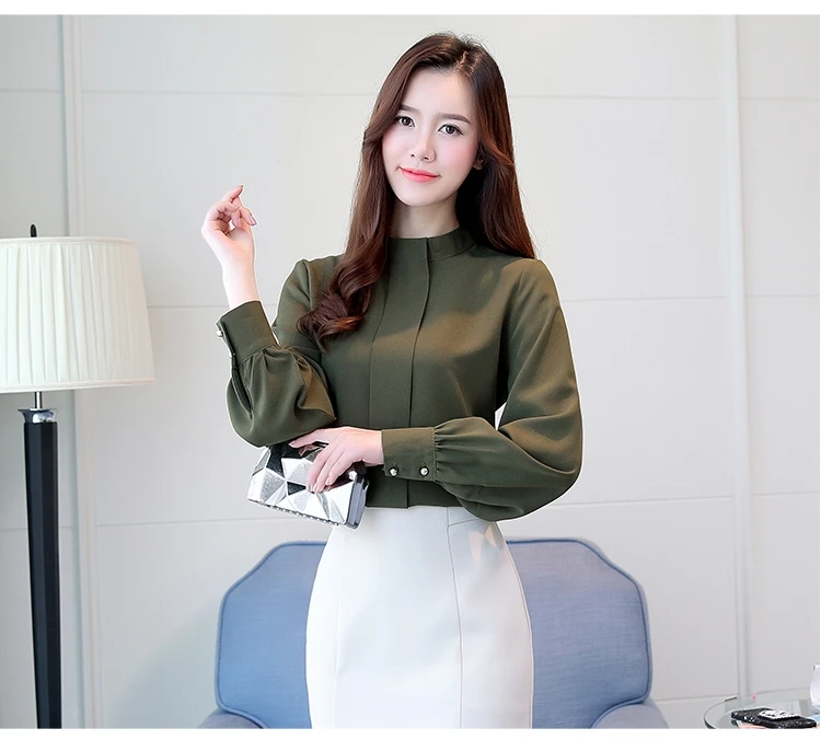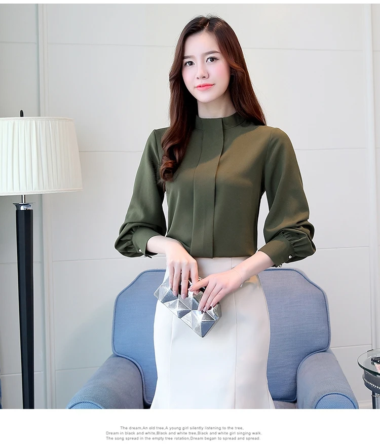 Офисные женские шифоновые блузки для женщин, осень-зима 2021, новые модные универсальные повседневные топы с длинным рукавом, рубашки с воротником-стойкой, женские