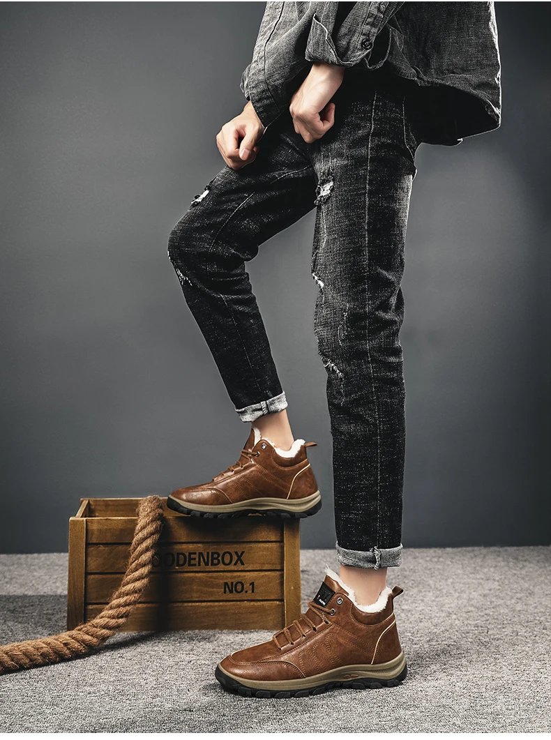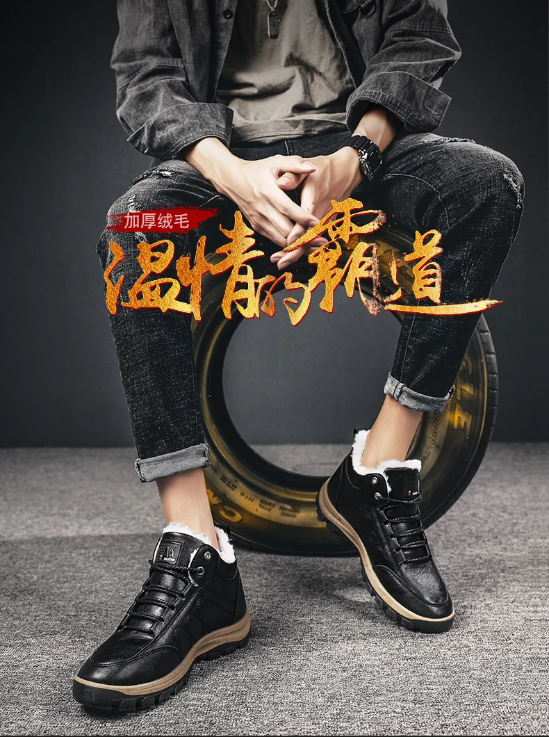 Мужские Нескользящие теплые ботинки, черные уличные Нескользящие ботинки из плюша и хлопка, зима 2021