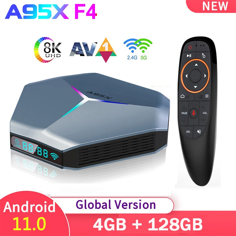 ТВ-приставка A95X F4 Amlogic S905X4 Android 11 4G 128G 64 ГБ 32 ГБ Двойной Wi-Fi Youtube RGB светильник медиаплеер ТВ-приставка A95XF4 2 Гб 16 Гб