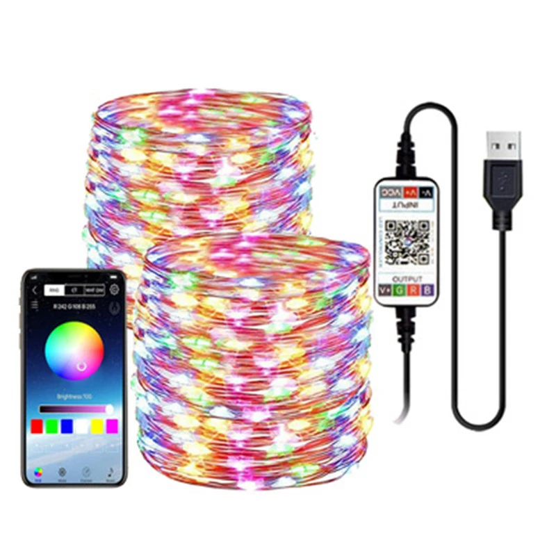 Светодиодная usb светильник Гирлянда для рождественской елки, с bluetooth, умное приложение, Рождество, украшение для дома, сказосветильник свет, венок
