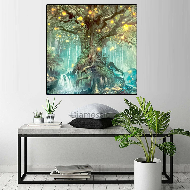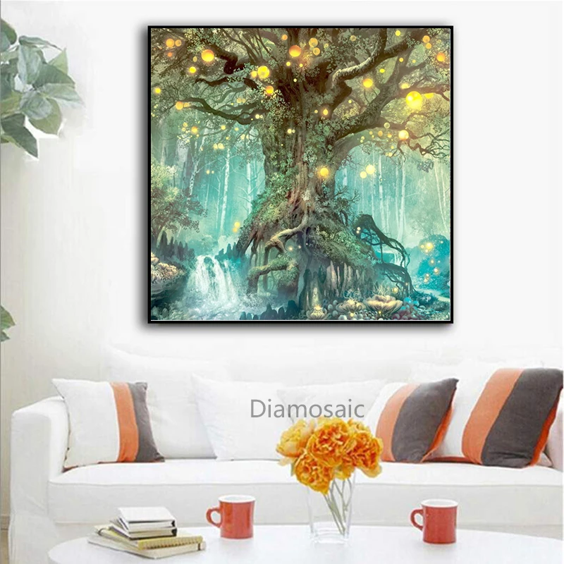 Алмазная живопись сделай сам, картина с деревом, Фэнтезийный лес, полноразмерная мозаика, вышивка крестиком, домашний декор