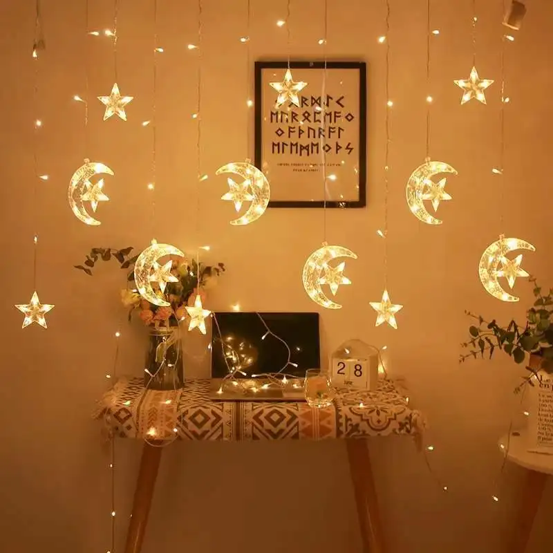Стиль N:Светодиодный светильник для занавесок Moon Hug Star