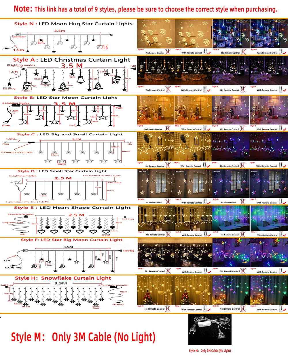 Стиль C:Светодиодный светильник для занавесок с большими и маленькими звездами